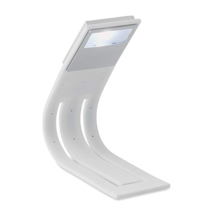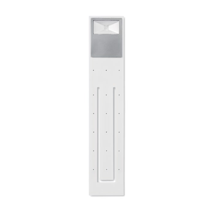 Luz LED de leitura com corpo flexível. Pode ser usada como marcador de página. Funciona com 2 pilhas CR2032 incluídas.