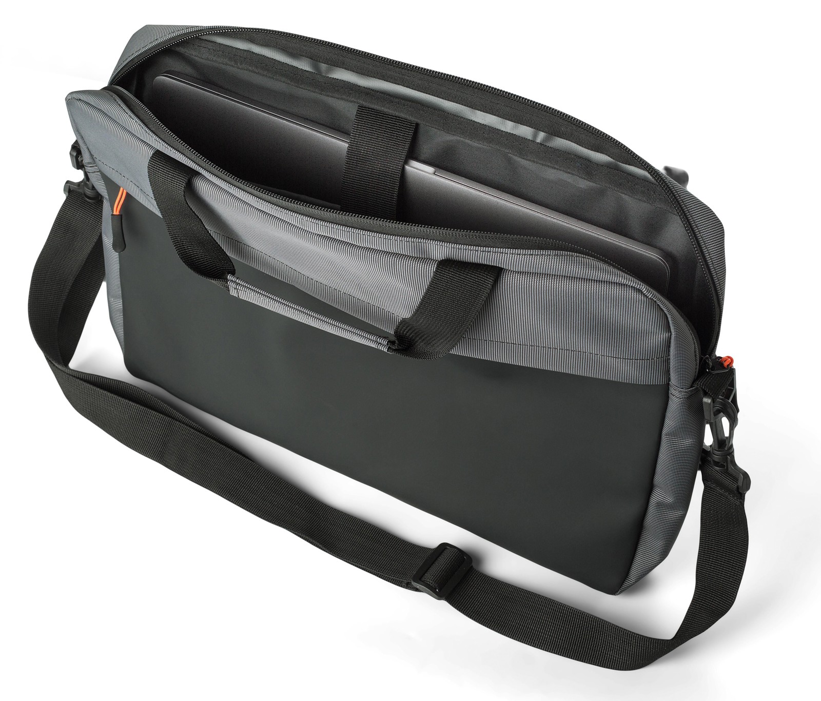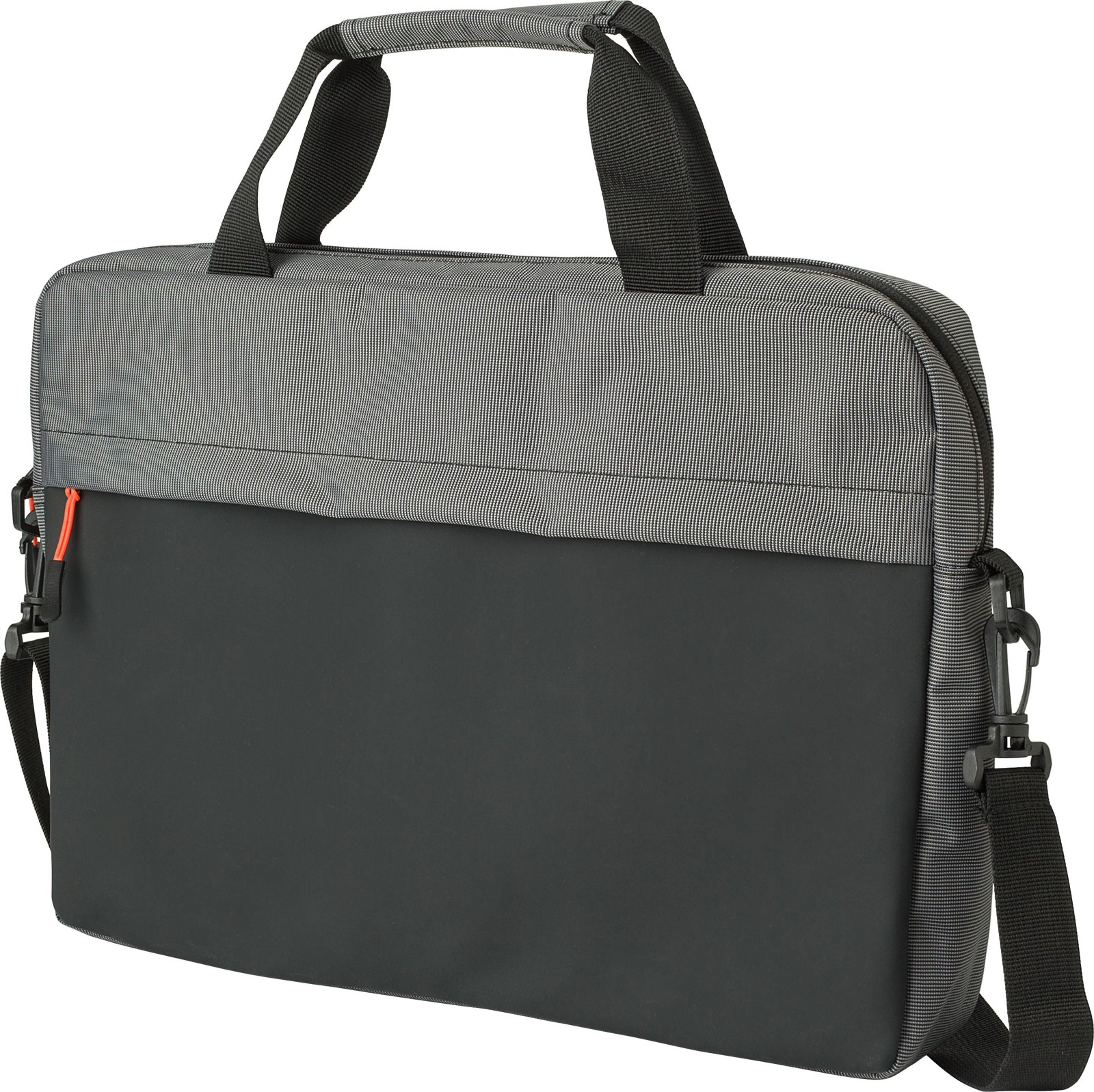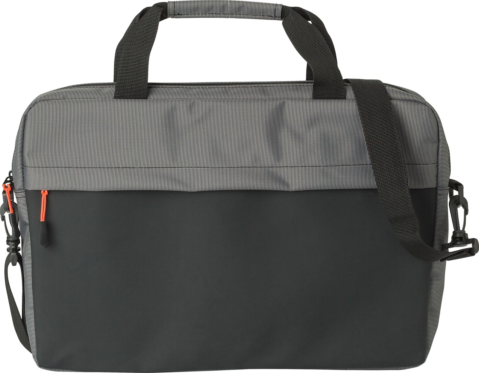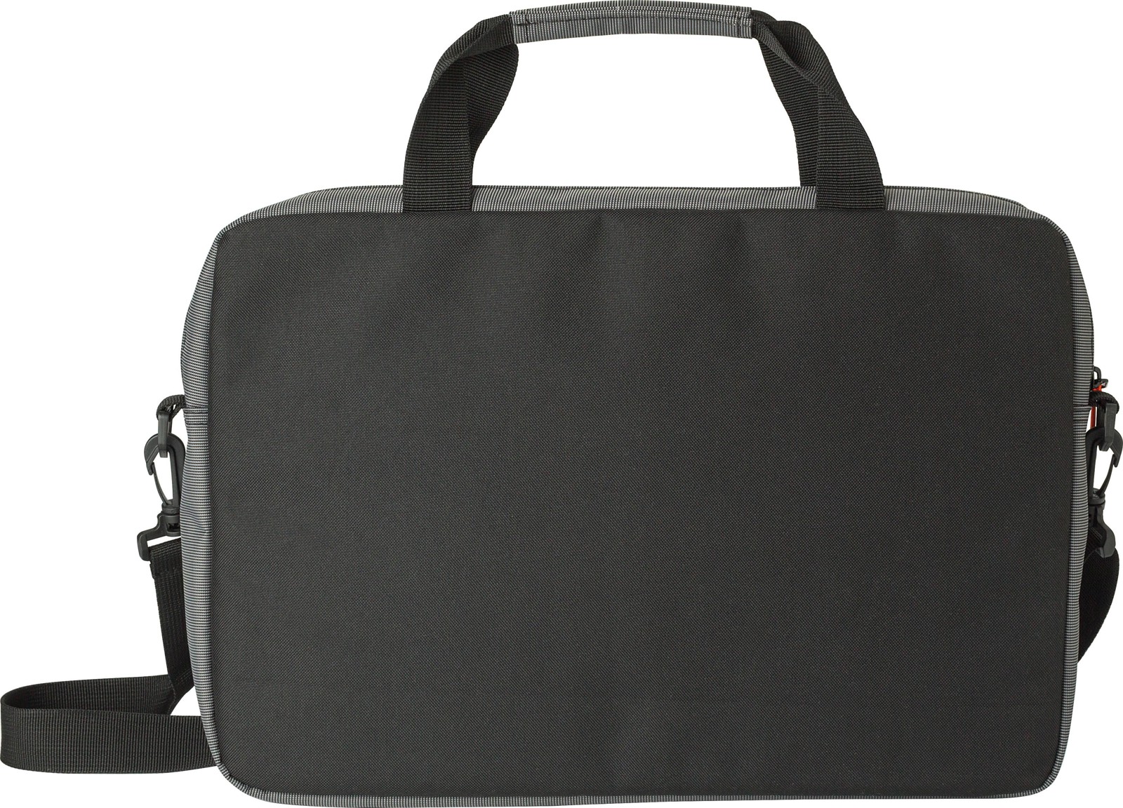 Mala bicolor 500D para computador portátil (15’’). Inclui um grande compartimento acolchoado com fecho de correr, pegas curtas e alça de ombro ajustável.