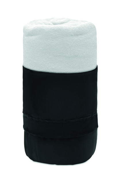 Manta de viagem em RPET numa bolsa de viagem em poliéster RPET. Velo de 180 gr/m².
