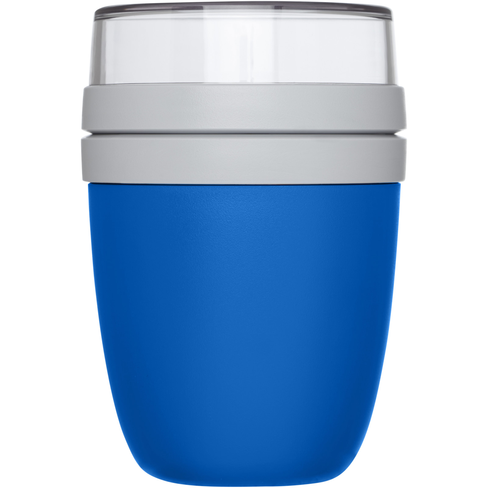 Marmita com dois compartimentos diferentes para manter os diferentes ingredientes separados. Ambos os recipientes têm uma tampa separada e, portanto, permanecem limpos. O teor do recipiente transparente superior é de 200 ml, o que significa que pode conter cerca de 75 gramas de alimentos sólidos. A capacidade do recipiente inferior é de 500 ml. Produzido em material durável e pode ser utilizado no congelador, no micro-ondas (remova a tampa) e na máquina de lavar louça. O recipiente transparente superior não deve ser utilizado no micro-ondas. À prova de vazamento. Sem BPA.