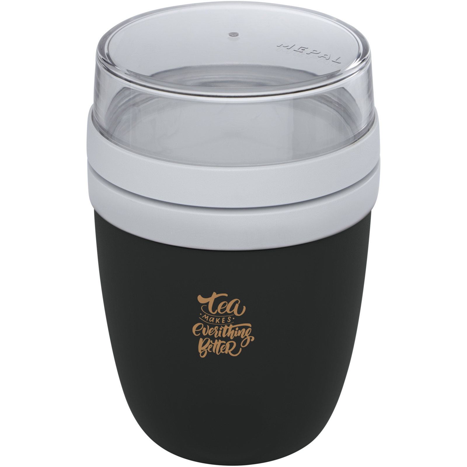 Marmita com dois compartimentos diferentes para manter os diferentes ingredientes separados. Ambos os recipientes têm uma tampa separada e, portanto, permanecem limpos. O teor do recipiente transparente superior é de 200 ml, o que significa que pode conter cerca de 75 gramas de alimentos sólidos. A capacidade do recipiente inferior é de 500 ml. Produzido em material durável e pode ser utilizado no congelador, no micro-ondas (remova a tampa) e na máquina de lavar louça. O recipiente transparente superior não deve ser utilizado no micro-ondas. À prova de vazamento. Sem BPA.