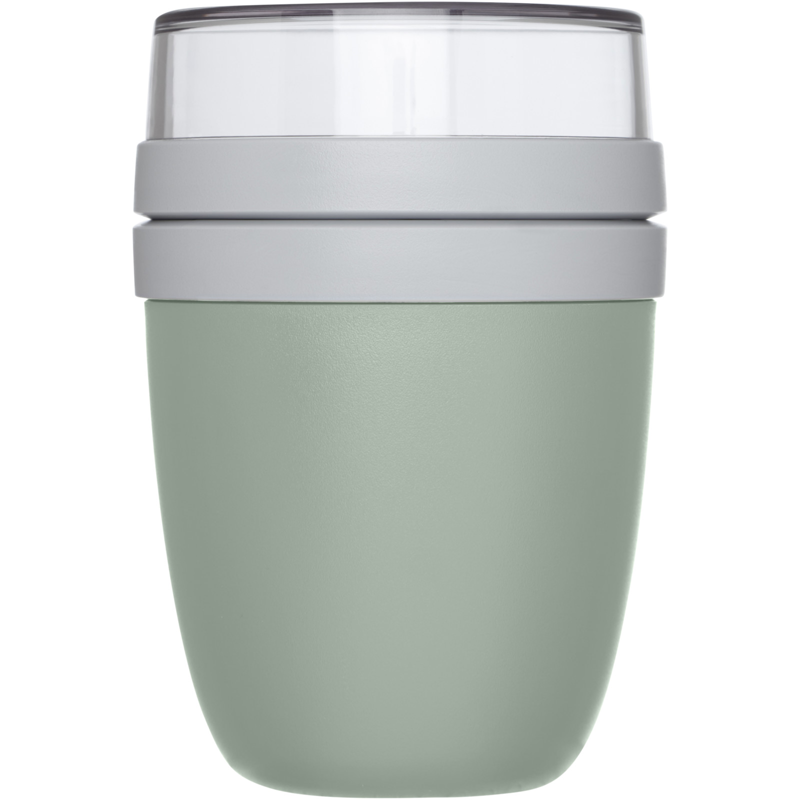 Marmita com dois compartimentos diferentes para manter os diferentes ingredientes separados. Ambos os recipientes têm uma tampa separada e, portanto, permanecem limpos. O teor do recipiente transparente superior é de 200 ml, o que significa que pode conter cerca de 75 gramas de alimentos sólidos. A capacidade do recipiente inferior é de 500 ml. Produzido em material durável e pode ser utilizado no congelador, no micro-ondas (remova a tampa) e na máquina de lavar louça. O recipiente transparente superior não deve ser utilizado no micro-ondas. À prova de vazamento. Sem BPA.