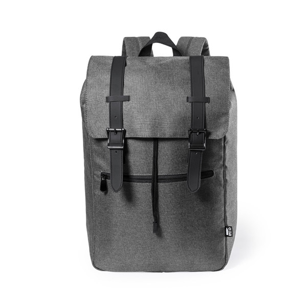 Mochila urban de linha nature, fabricada em resistente poliéster 300D RPET livre de PVC, elaborada a partir de plástico reciclado, para incentivar a reutilização de resíduos plásticos e contribuir para a sustentabilidade do planeta. Bolso principal com tiras e fechos de fivela metálicos com bolso frontal de correr e puxador metálico. Interior com bolso acolchoado para portátil de até 15 polegadas e tablet de até 10 polegadas. Fitas ajustáveis para ombro acolchoadas, com distintivo RPET na etiqueta exterior. Acolchoada. Bolso Acolchoado para Portátil e Tablet