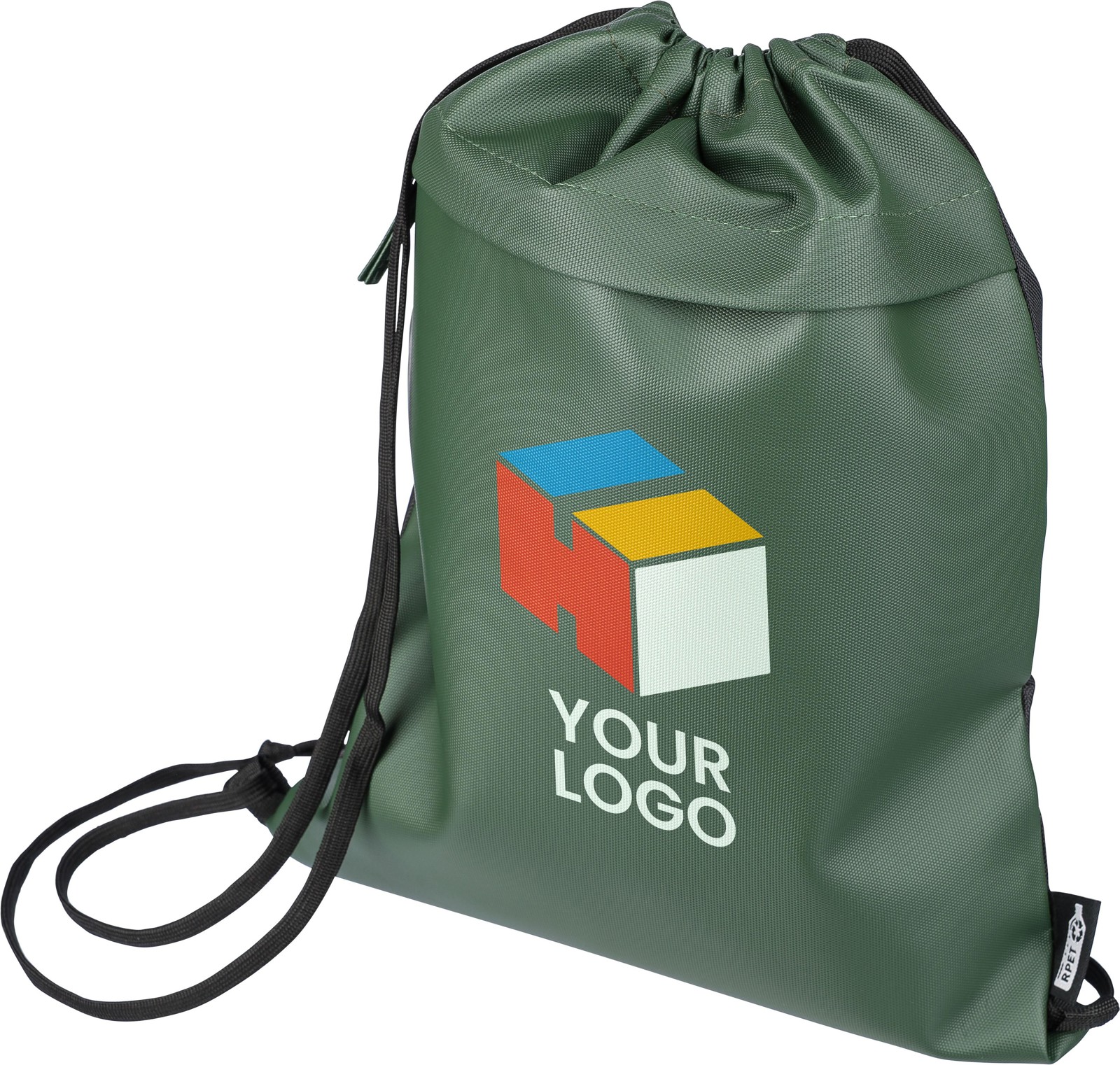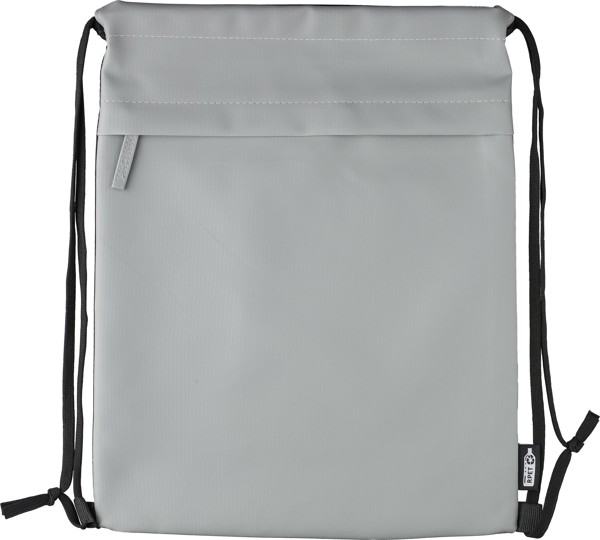 Saco com cordão em poliéster rPET (600D) com revestimento em PU na parte da frente para repelir a água. Inclui um bolso frontal oculto com fecho de correr e um compartimento espaçoso com cordão. Inclui dois compartimentos com bolsos frontais e interiores. Capacidade 8 l, capacidade de carga 8 kg. Inclui uma etiqueta rPET no exterior e uma etiqueta personalizada no interior.