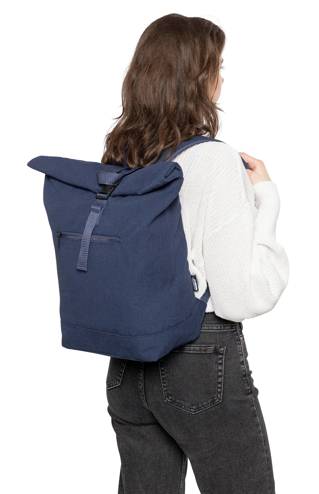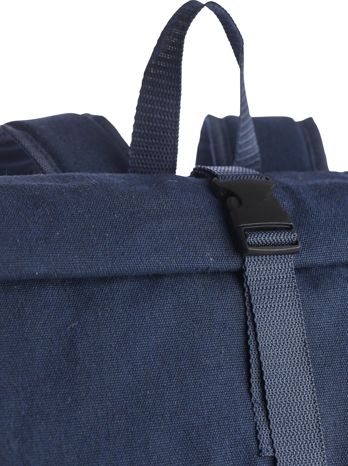 Mochila de tecido de algodão reciclado (330 g/m2) com forro de poliéster 210D e fecho de fivela de plástico. Tem uma capacidade de 15L, um compartimento grande com fecho de correr com um compartimento para portátil de 15 polegadas, dois compartimentos interiores e um compartimento exterior. O desenho inclui uma alça de transporte na parte superior, alças ajustáveis almofadadas e um pequeno bolso frontal com fecho de correr. Capacidade de carga: 14 kg. Inclui uma etiqueta.