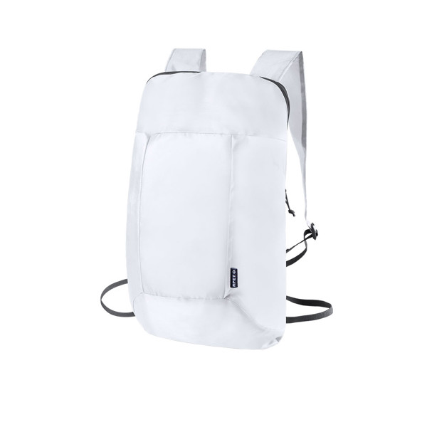 Mochila dobrável em RPET 210D. Com fechamento em zíper, cantos reforçados, cintas de ombro ajustáveis. Distintivo RPET na etiqueta externa.O material RPET é elaborado a partir de plástico reciclado, promovendo a reutilização de resíduos plásticos e ajudando na sustentabilidade do planeta.