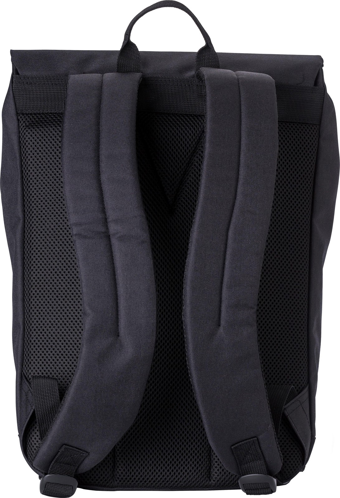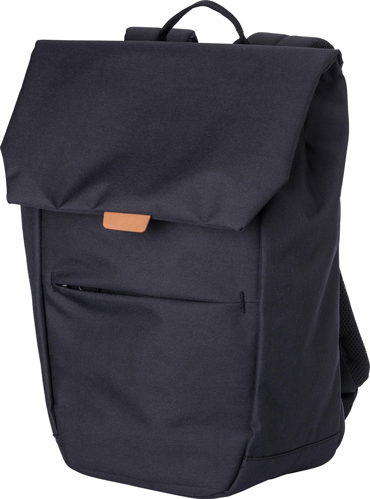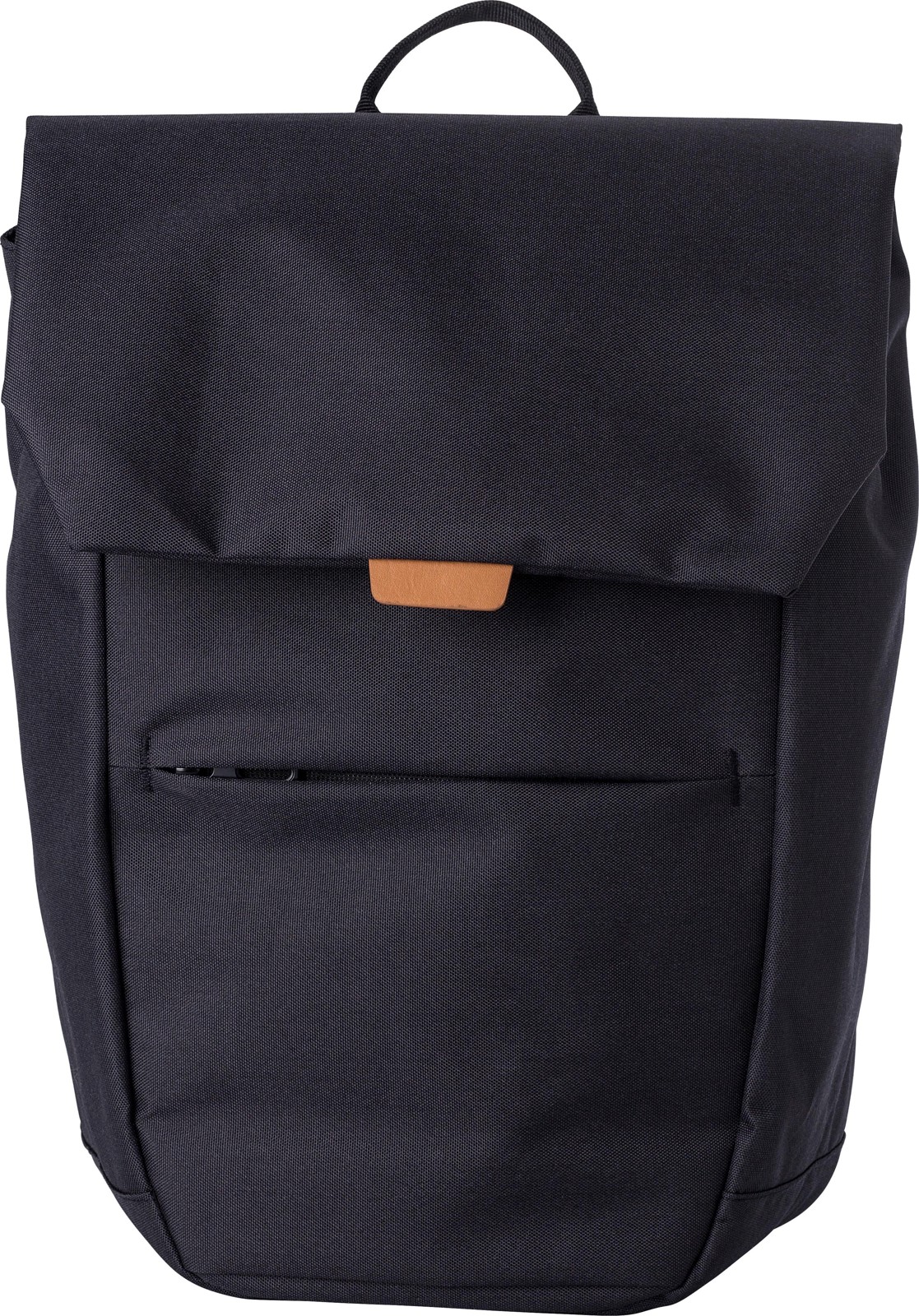 Mochila bicolor em poliéster (600D) com etiqueta PU na aba. Um bolso com fecho de correr na parte da frente. Grande compartimento superior com fecho metálico. Compartimento para portátil (15’’). Costas reforçadas e alças de ombro ajustáveis.