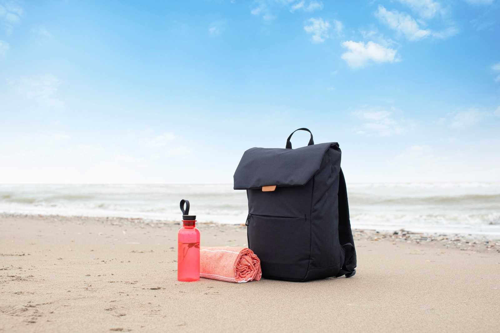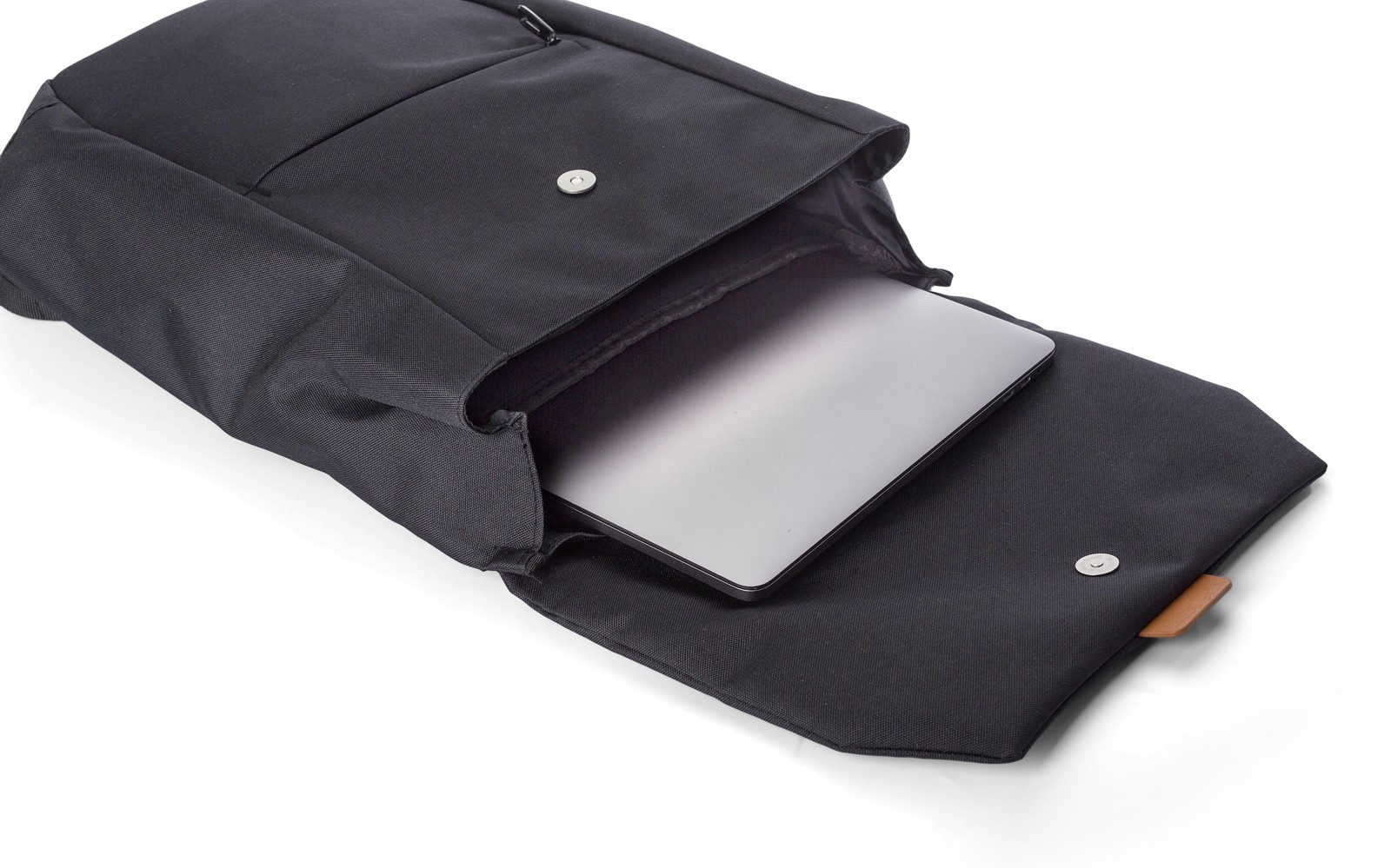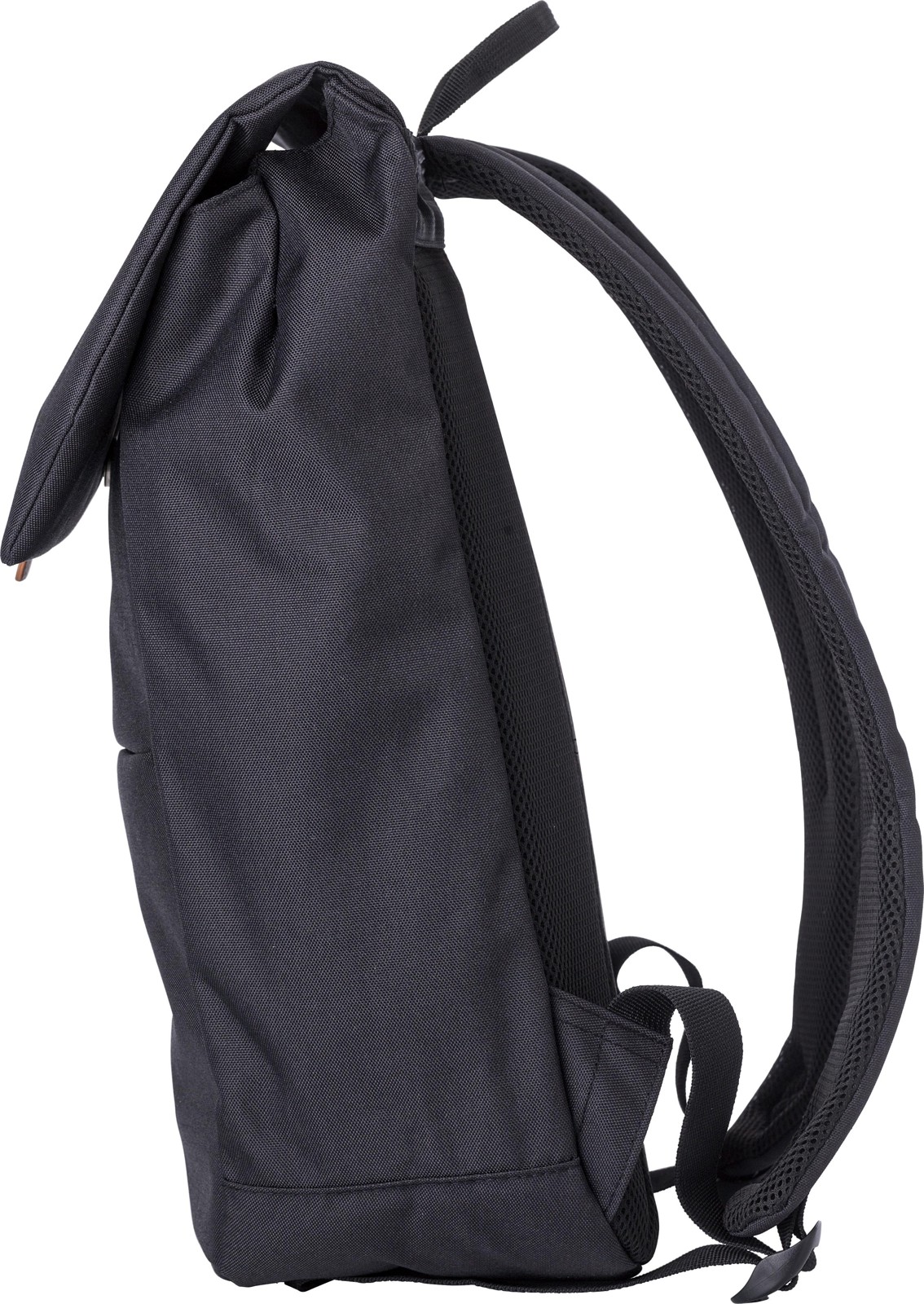 Mochila bicolor em poliéster (600D) com etiqueta PU na aba. Um bolso com fecho de correr na parte da frente. Grande compartimento superior com fecho metálico. Compartimento para portátil (15’’). Costas reforçadas e alças de ombro ajustáveis.