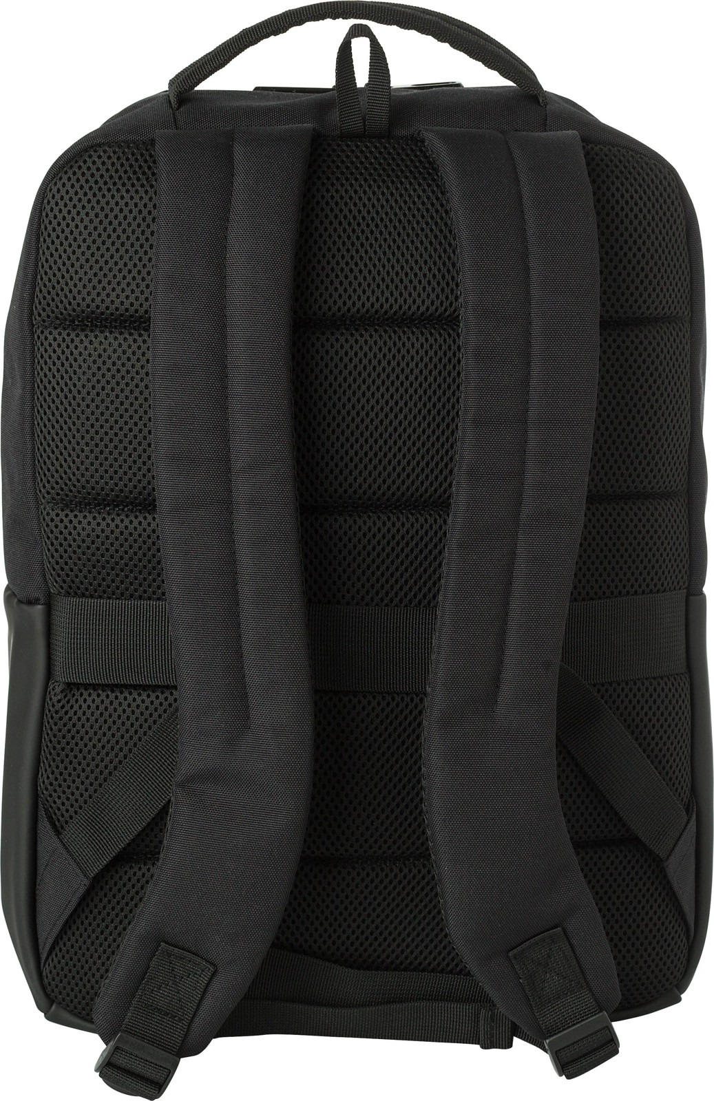 Mochila para computador portátil (15’’) em poliéster (600D). Grande compartimento com fecho de correr na parte superior com vários compartimentos no interior. Pequeno compartimento com fecho na parte da frente. Costas reforçadas e alças de ombro ajustáveis e cinta de fixação ao trolley.