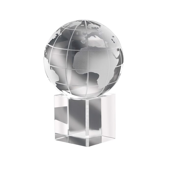 Pisa-papéis globo de cristal. Apresentado em caixa de presente.