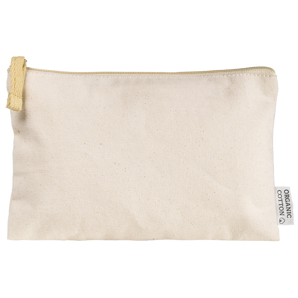 Nécessaire fabricado em algodão orgânico canvas de 280 gr/m2 em cor natural e puxador a conjunto.