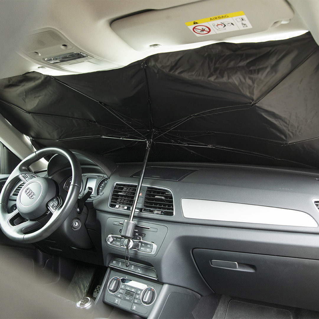 Pára-sol dobrável para automóvel. Medida 140x78cm. Com mecanismo de abertura manual e bolsa de poliéster incluída. Bolsa Poliéster