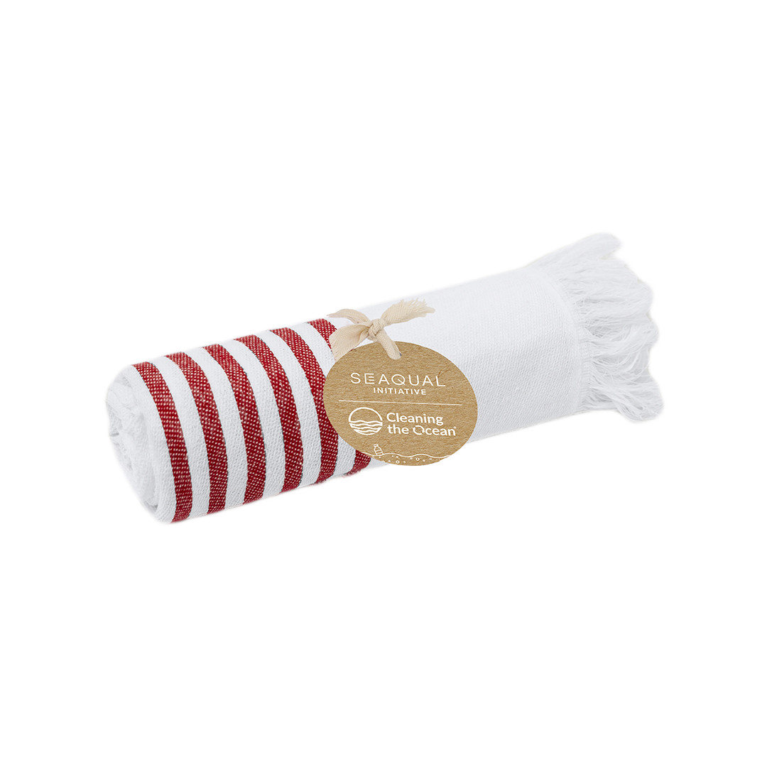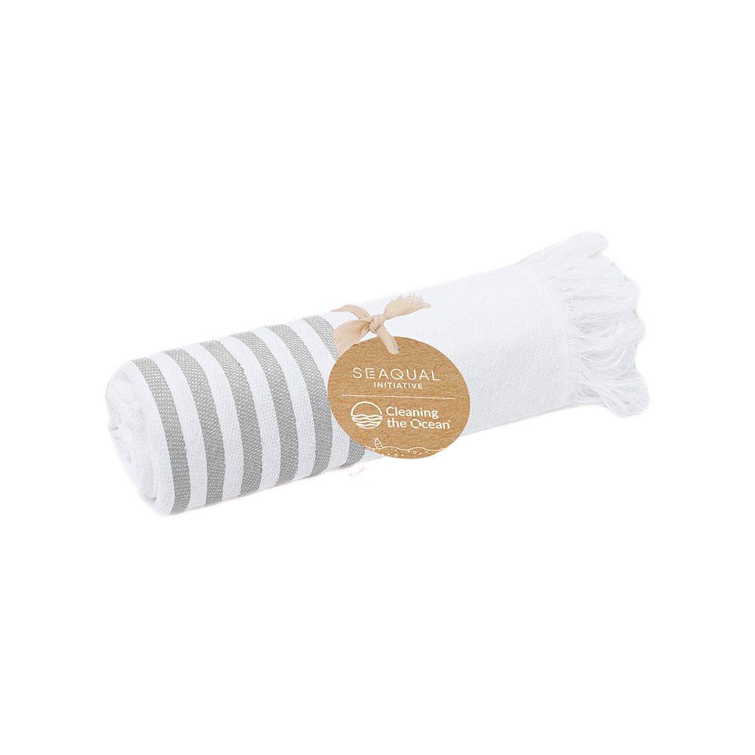 Suave pareo-toalha de 300 g/m², confeccionado em uma combinação de algodão reciclado e poliéster reciclado SEAQUAL.Seu design apresenta uma base em branco combinada com listras coloridas e decorada com distinguidos fios nas extremidades. Inclui etiqueta com design SEAQUAL, que certifica sua origem sustentável e sua contribuição para a limpeza dos oceanos. SEAQUAL INITIATIVE trabalha com colaboradores e autoridades para ajudar a limpar nossos oceanos. Os resíduos marinhos de nossas praias, fundos e superfícies oceânicas, rios e estuários são coletados por programas de limpeza. Depois são classificados em diferentes tipos de materiais e a parte de plástico é limpa e transformada em PLÁSTICO MARINHO RECICLADO, uma matéria-prima completamente rastreável que cria produtos sustentáveis e inspiradores. Ao escolher produtos que contêm PLÁSTICO MARINHO RECICLADO, você está ajudando a limpar nossos oceanos.JUNTOS POR UM OCEANO LIMPO.