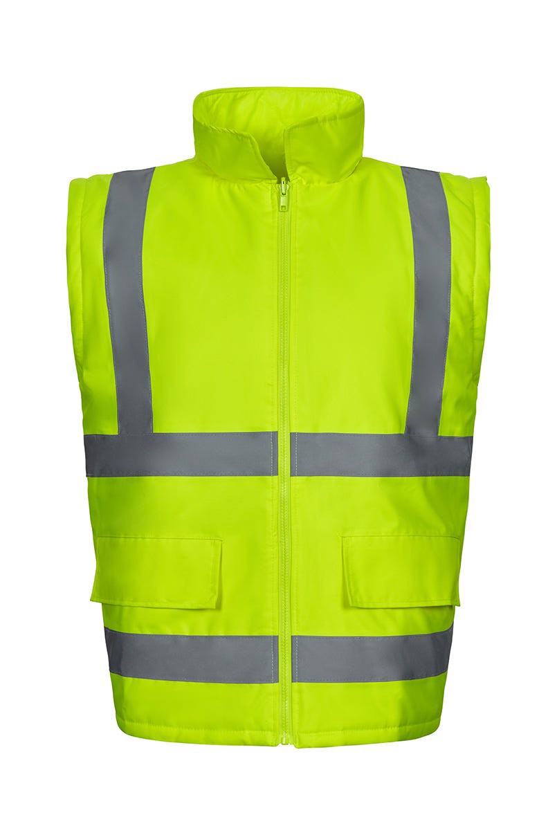 Quatro peças em uma: Parka, Impermeável, Casaco e Colete Parka / Impermeável: Fecho central com fecho de correr oculto com carcela Carcela central com fecho de velcro Faixas refletoras no torso, ombros e mangas Capuz oculto no interior da gola Punhos canelados Dois bolsos: 2 bolsos de chapa inferiores, com pala e velcro Casaco / Colete: Fecho central com fecho de correr Faixas refletoras no torso e nos ombros Punhos canelados Mangas removíveis Três bolsos: 2 bolsos de chapa inferiores, com pala e velcro EXTERIOR: 100% POLIÉSTER COM RECUBRIMENTO DE POLIURETANO. FORRO: 100% POLIÉSTER. 180 GSM