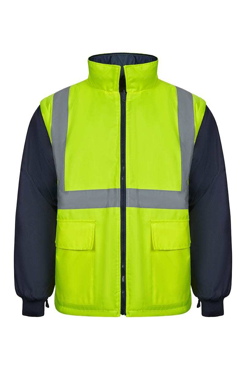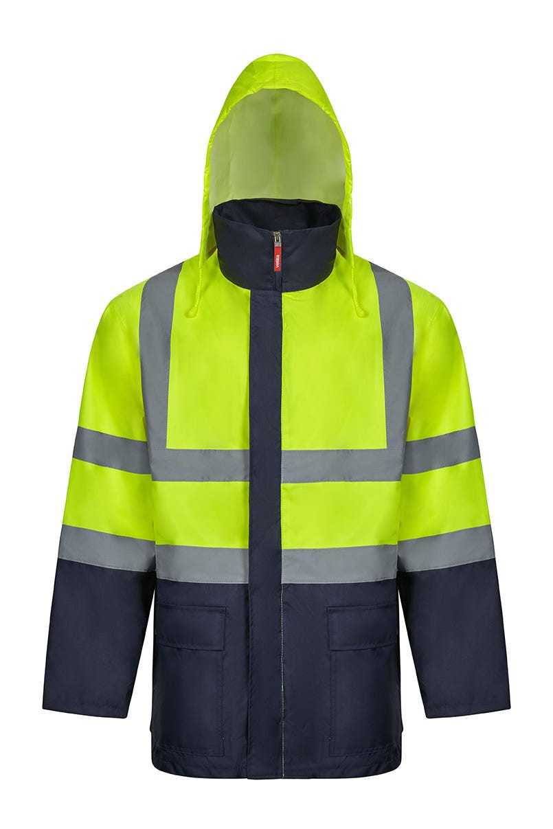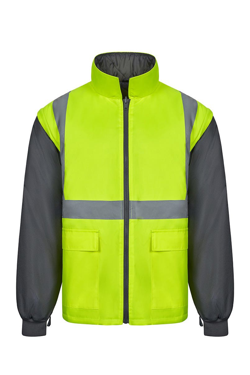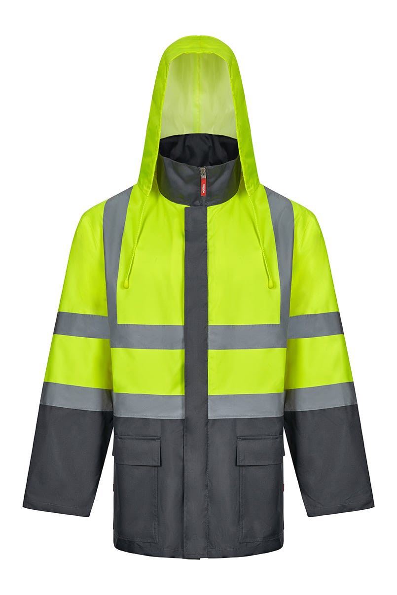 Quatro peças de roupa numa só: Parka, Impermeável, Casaco e Colete Parka / Impermeável: Fecho-ecler central, oculto com pala Pala central com fecho de velcro Faixas refletoras no torso, ombros e mangas Capuz oculto no interior da gola Punhos canelados Dois bolsos inferiores de remendo, com pala e velcro Casaco / Colete Fecho-ecler central Faixas refletoras no torso e ombros Punhos canelado Dois bolsos inferiores de remendo, com pala e velcro Um bolso interior de remendo, com fecho-ecler Mangas desmontáveis Exterior: 100% poliéster com recobrimento de PU / 180 gr/m2 Forro: 100% poliéster / 60 gr/m2 Enchimento: 100% poliéster / 160 gr/m2 EXTERIOR: 100% POLIÉSTER COM RECUBRIMENTO DE POLIURETANO. FORRO: 100% POLIÉSTER. 180 GSM