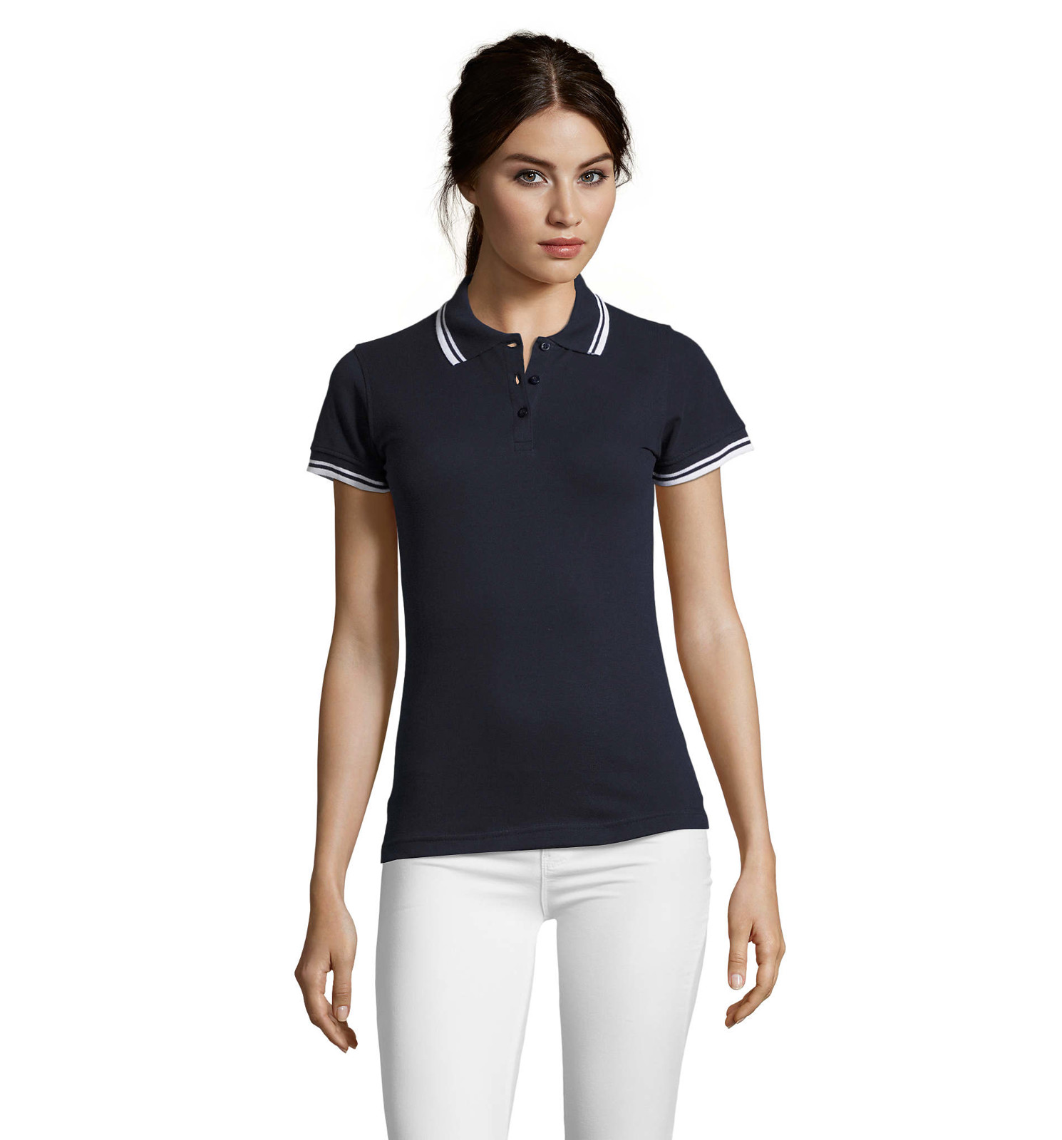 SOL'S PASADENA WOMEN, WOMEN'S POLO SHIRT, 100% Ringspun cotton PIQUÉ 200, Rib 1x1 collar and cuffs, Reinforcing tape on neck, Short sleeves, Contrasting stripes on collar and cuffs, Tone on tone 3 button placket, Fitted cut, Cut and sewn, Side slits, Spare button on the inside seam.About sizes matching, please refer to the size chart in the product documentation section.