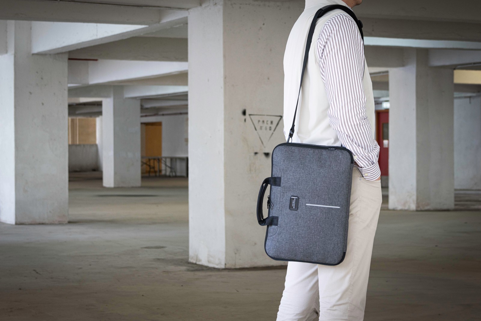 A pasta para portátil Specter 2 é uma bolsa versátil e multifuncional que se transforma em três modos: de mão, de ombro e a tiracolo. Fabricado a partir de garrafas PET recicladas, possui um compartimento principal espaçoso e uma bolsa almofadada que se adapta a um portátil de 16 polegadas, juntamente com vários bolsos para o seu tablet, telemóvel, carregador, cabos e muito mais. O tecido Touring durável e impermeável protege os seus pertences de riscos, derrames e impactos, tornando esta pasta ideal para viagens, trabalho ou utilização diária.