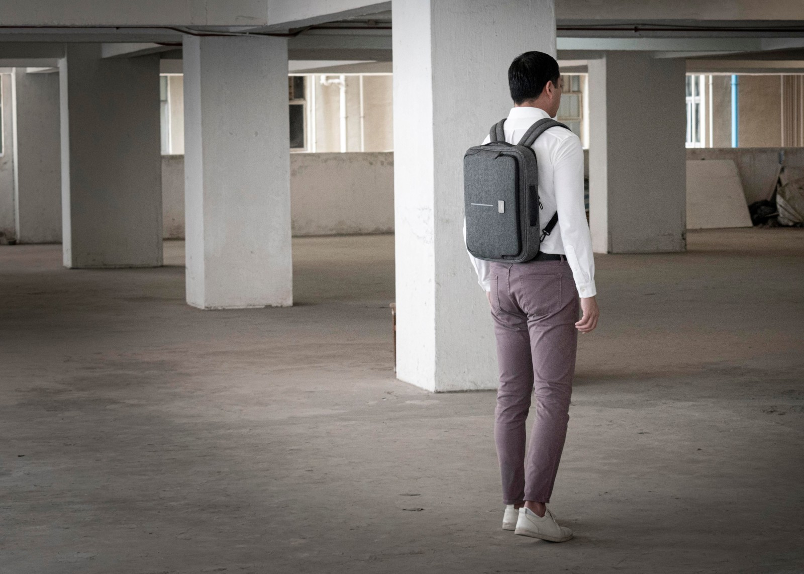 Specter é uma pasta minimalista e profissional para portátil feita com materiais de alta qualidade. O exterior apresenta um tom cinza tecnológico, repelente à água e manchas, proporcionando um visual leve e moderno, ao mesmo tempo em que protege seus itens essenciais. No interior, há um compartimento acolchoado que acomoda até um laptop de 16 polegadas, além de um bolso externo e um compartimento oculto para acesso rápido. Feito com tecido de viagem em PET reciclado, repelente à água e sujeira, o Specter combina estilo e durabilidade para o uso diário. O saco pode ter duas formas de transporte: em modo mochila depois do trabalho ou em modo portátil no escritório. O lado de trás contém as alças ocultas que transformam o saco numa mochila, para um estilo versátil e conforto durante todo o dia.