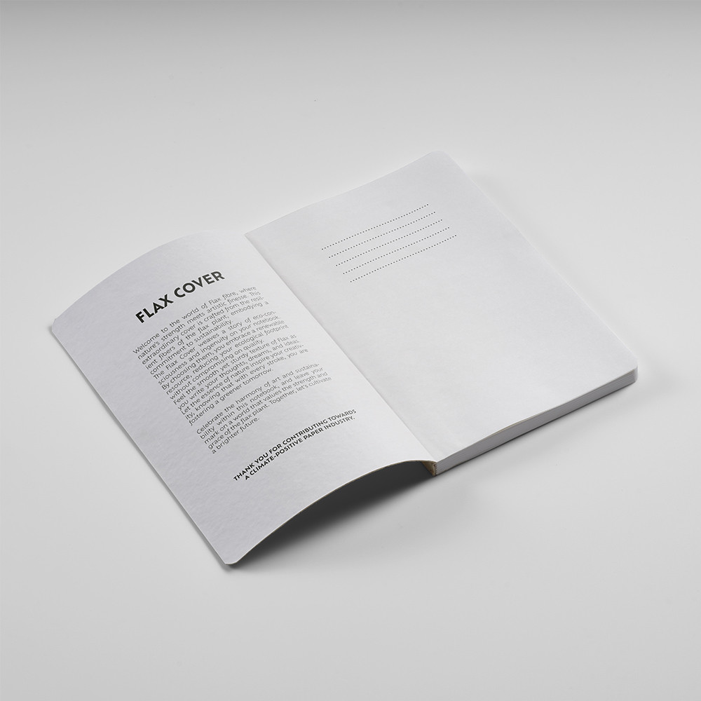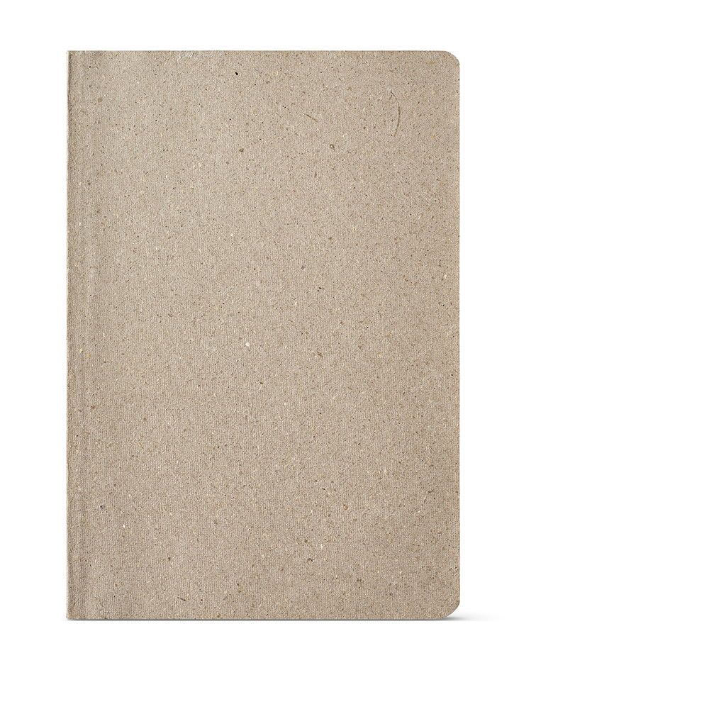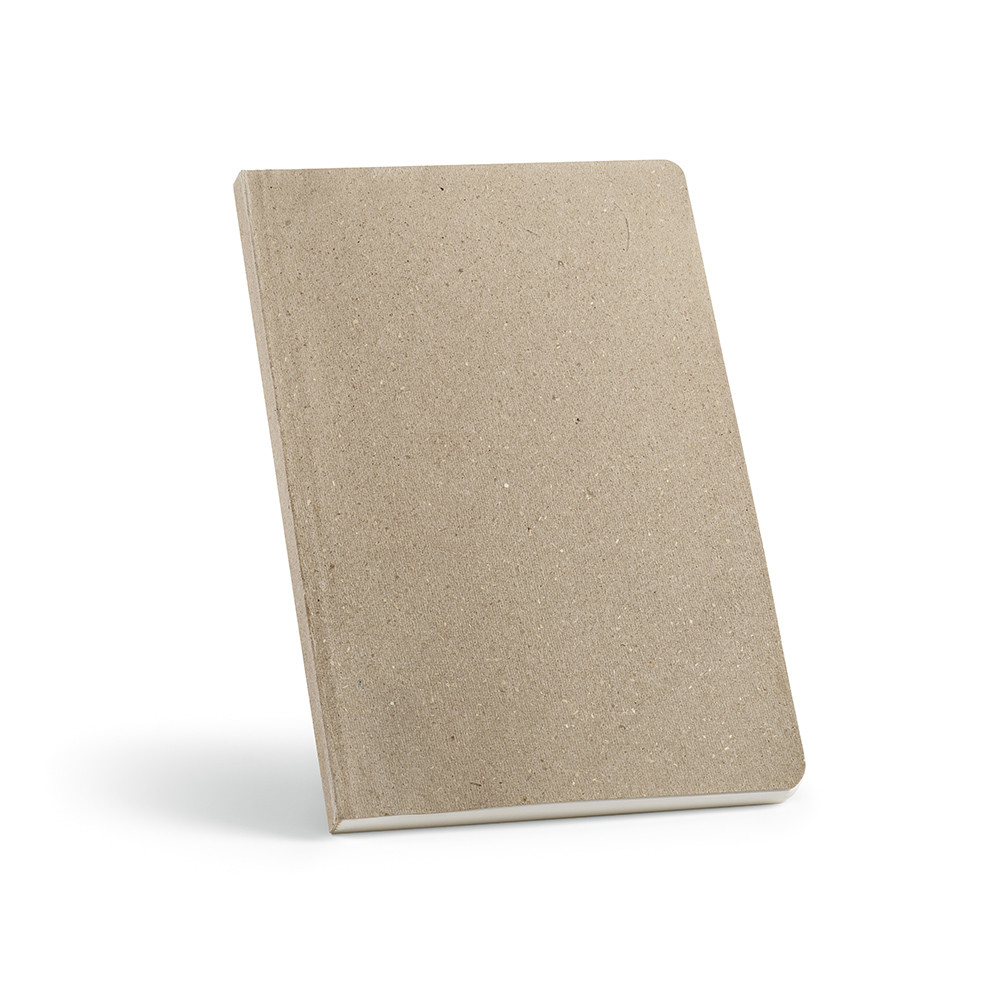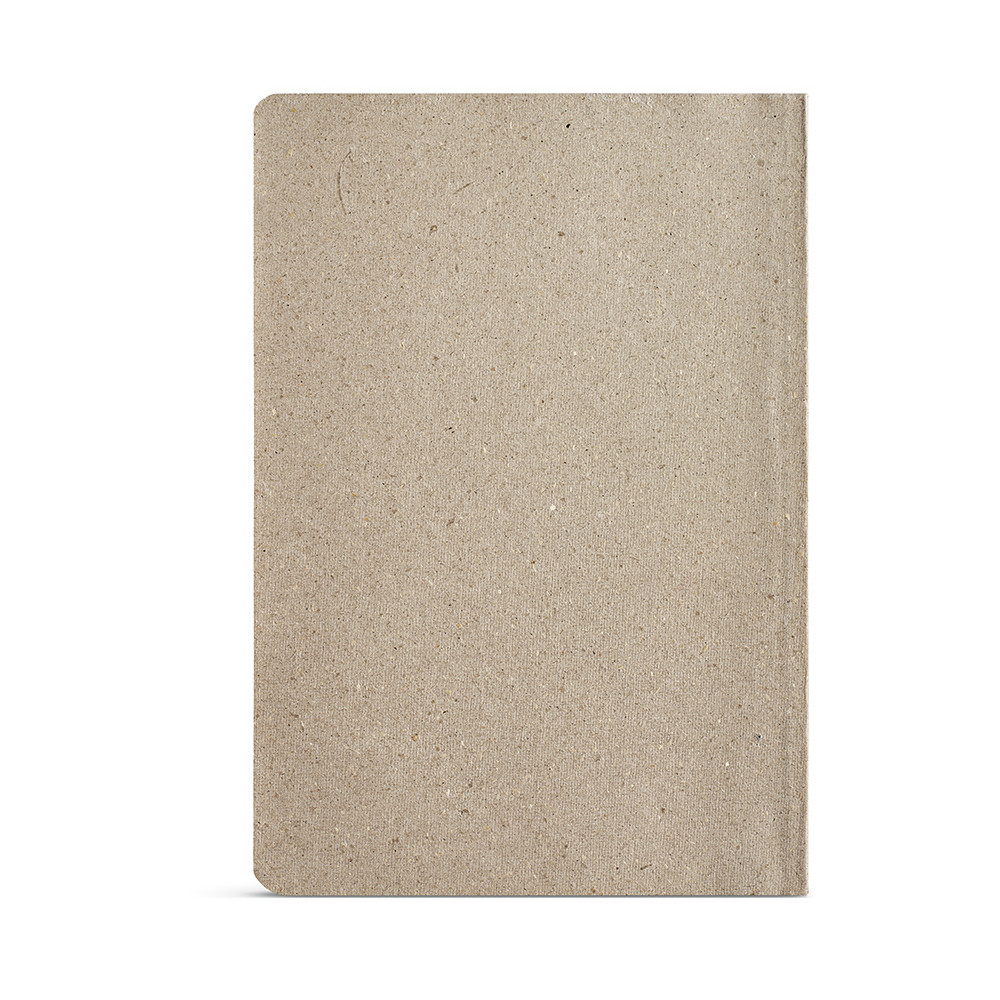 Caderno Poe A5, feito de linho, com 196 páginas pontilhadas (80 gsm) recicladas, com espaço para data e número de página. Capa flexível com folha de rosto com toque artístico. Fornecido numa manga individual de kraft.