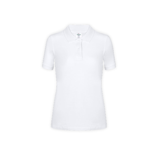 WPS180 keya, camisa pólo pólo para mulher em material 100% algodão de 180g/m2. Com dois botões de cores correspondentes e disponíveis em cor branca. Tamanhos S, M, L, XL, XXL.