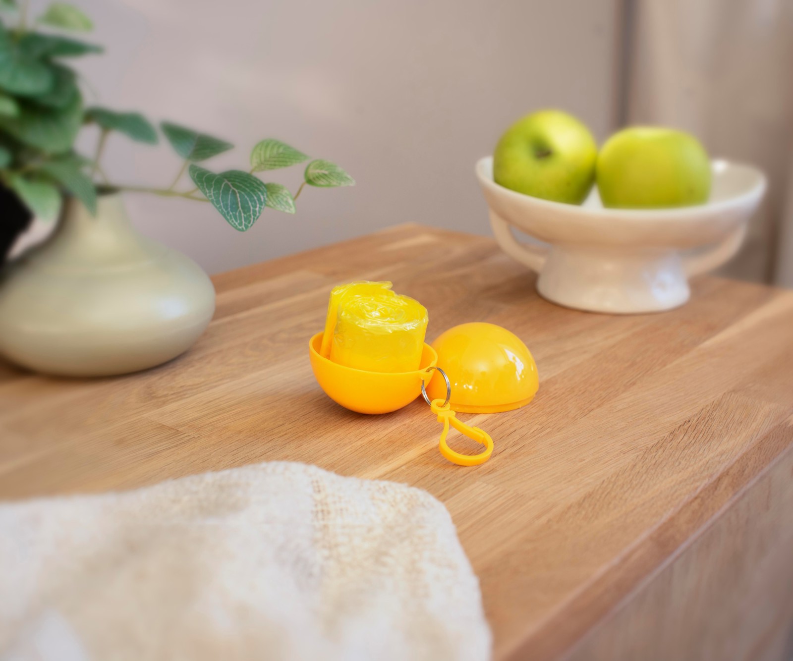 Bola de plástico com poncho de 90 x 120 cm.