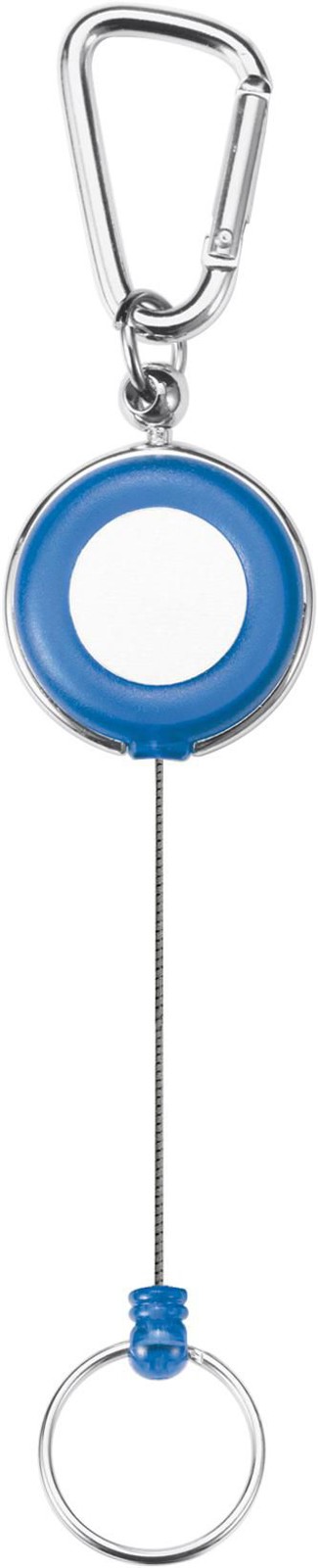 Porta-chaves de plástico com chapa redonda e mosquetão de metal, cordão de 61 cm.