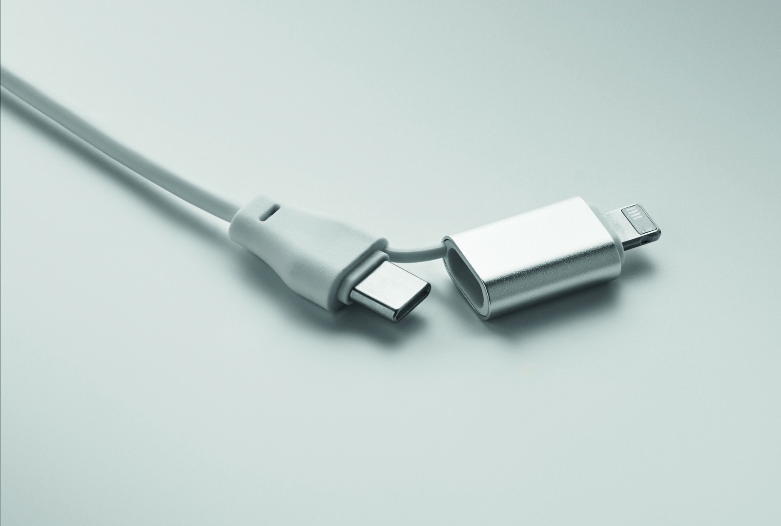Porta-chaves 4 em 1 com cabo de carregamento e transferência de dados de 60 W. Entrada: 2 em 1 Tipo C e Tipo A. Saída: Carregamento de relógio (Samsung® e Apple®), tipo C e micro-B (2 em 1 pin).