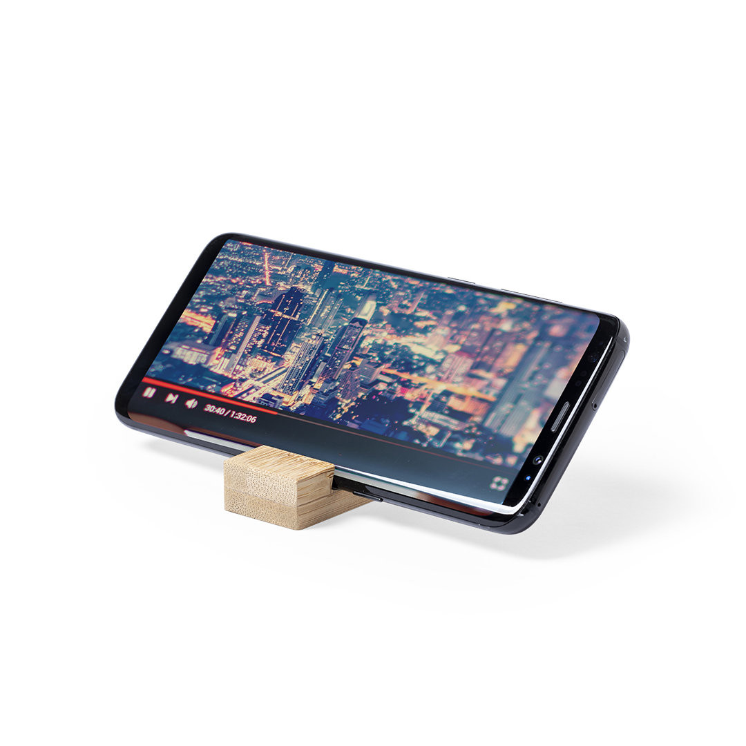 Porta-chaves suporte de linha nature para smartphone. Fabricado em resistente bambu de acabamento lacado, com resistente cordão e argola metálica.