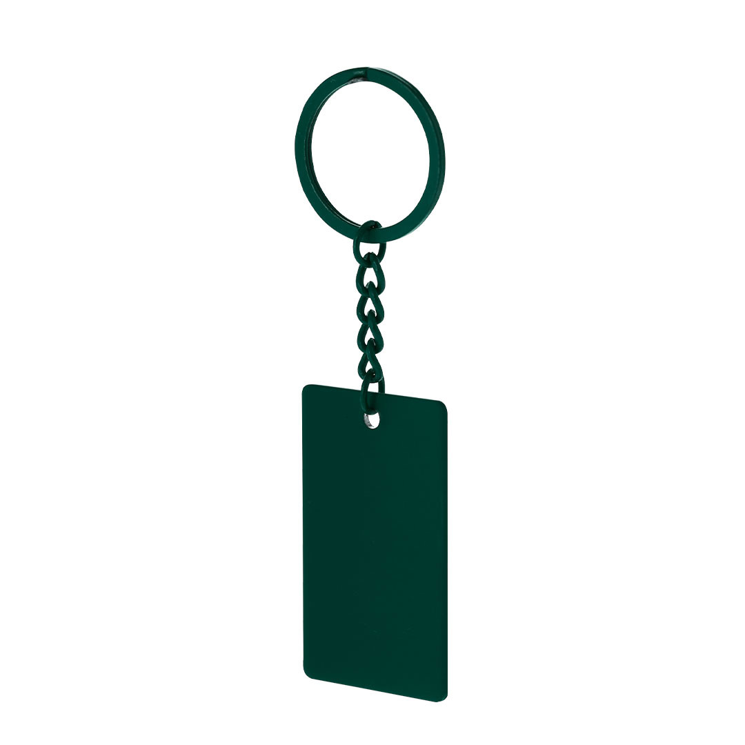 Chaveiro de aço inoxidável com acabamento emborrachado. É ideal para marcação a laser.