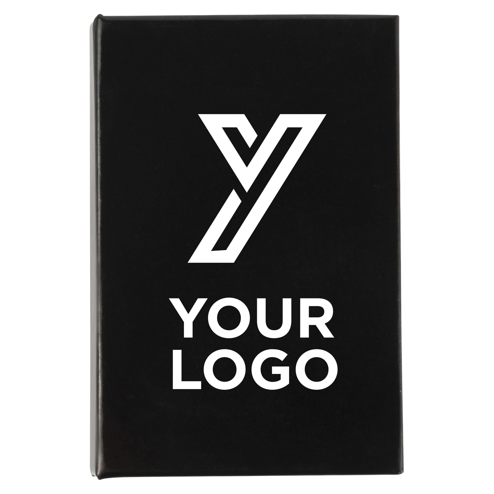 Porta memos de capa dura com papel adesivo de 70 grs e notas adesivas em diferentes cores.
