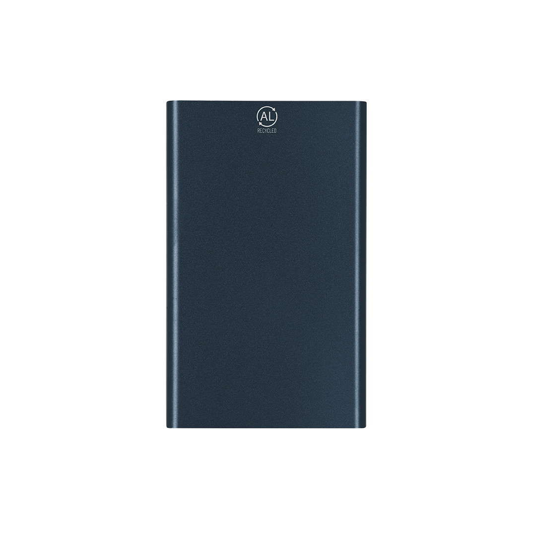 Bateria externa de 4.000 mAh em alumínio reciclado. Com saída USB e entrada/saída USB Type-C. Indicadores LED de estado de carregamento e cabo de carregamento Type-C incluídos. O alumínio reciclado é um material com possibilidades quase infinitas de reciclagem, sem perder as suas propriedades originais e consumindo menos energia neste processo. Certificação GRS (Global Recycled Standard), que garante a origem reciclada do material utilizado para produzir o produto. USB Tipo-C Entrada/Saída: 5V DC 2.4AUx: 5V DC 1ALAS capacidades mostradas em todas as nossas baterias externas são reais, incorporando todas as baterias de Grau A e não recicladas, com uma vida útil de pelo menos 500 ciclos de carga e de acordo com os regulamentos CE. Além disso, eles são fabricados de acordo com as normas RoHS e de acordo com os seguintes requisitos de segurança: Sistema de proteção contra sobrecarga do banco de energia. Sistema de proteção total contra descarga que oferece uma vida útil mais longa do banco