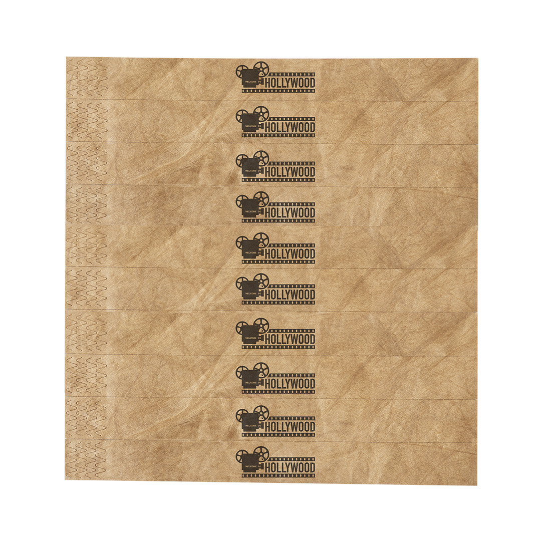 Pulseira para eventos de acabamento nature. Fabricada em fibra sintética Tyvek®, que se destaca especialmente pela sua resistência, flexibilidade, durabilidade e facilidade de impressão. Com um fecho adesivo, tamanho único para adultos. Resistente à água. Apresentada em pranchas de 10 peças com numeração individual. Tamanho Único. Adulto. Fecho Segurança