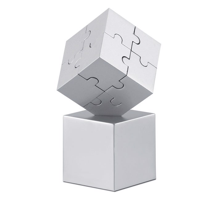 Puzzle 3D puzzle composto de peças metálicas magnéticas. Também pode ser utilizado como pisa papéis.