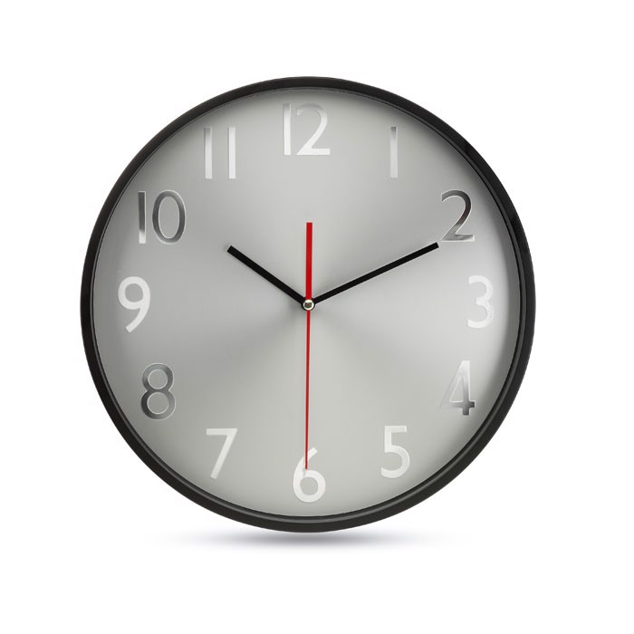 Relógio de parede com esfera e ponteiros de alumínio, protegido com vidro. Não inclui 1 pilhas AA
