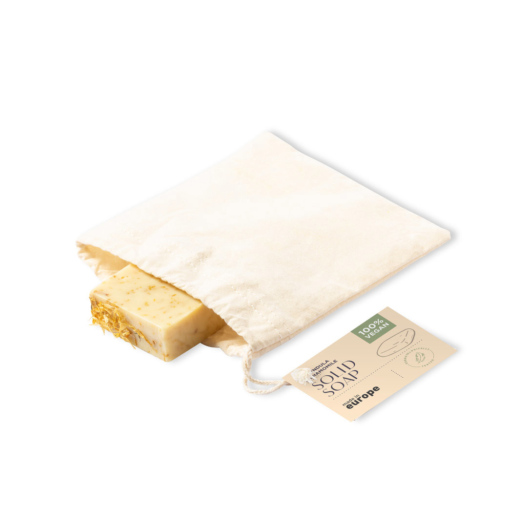 Sabonete em barra vegano de 100 gr. Aroma de calêndula e camomila com propriedades calmantes, hidratantes e reparadoras. Dermatologicamente testado e de fabrico europeu. Apresentação em bolsa individual de algodão, com fecho de cordão e etiqueta distintiva. Produto sustentável e 100% vegano, sem ingredientes de proveniência animal. Além de que, não foram realizados testes destes produtos em animais, promovendo o cuidado e respeito de todos eles. Calêndula e Camomila. 100 gr