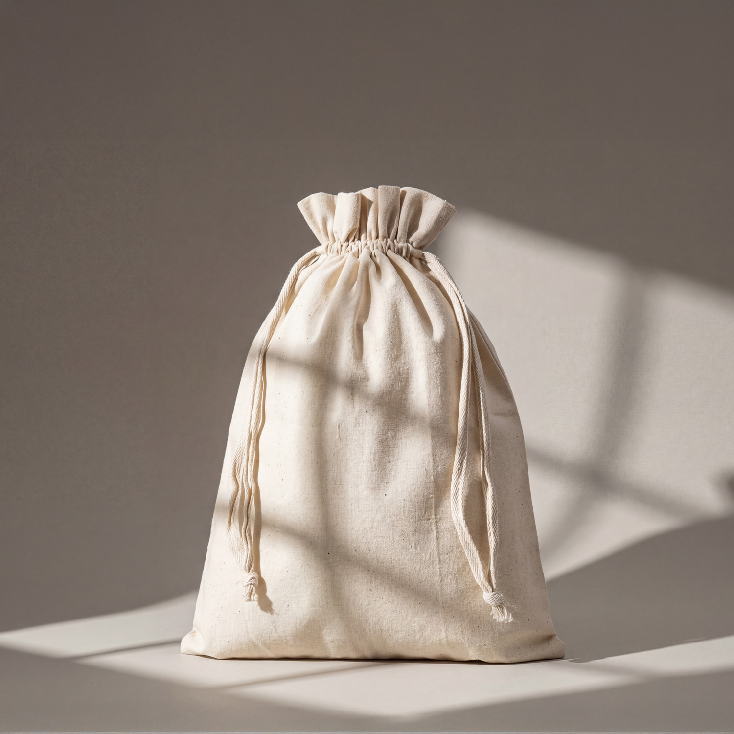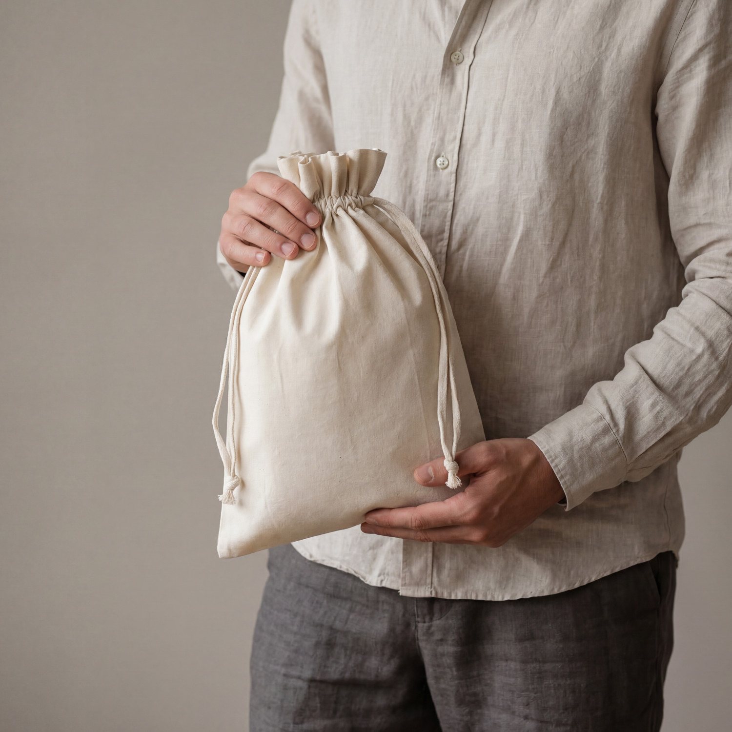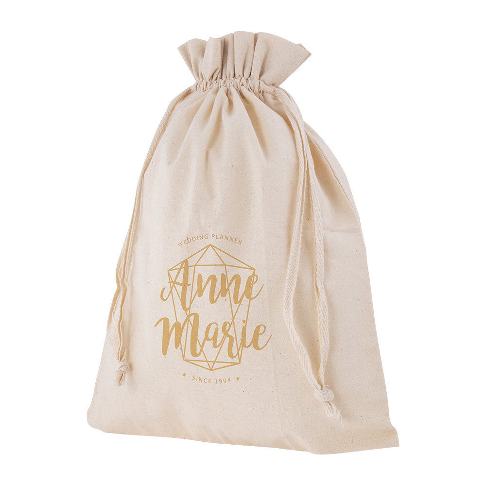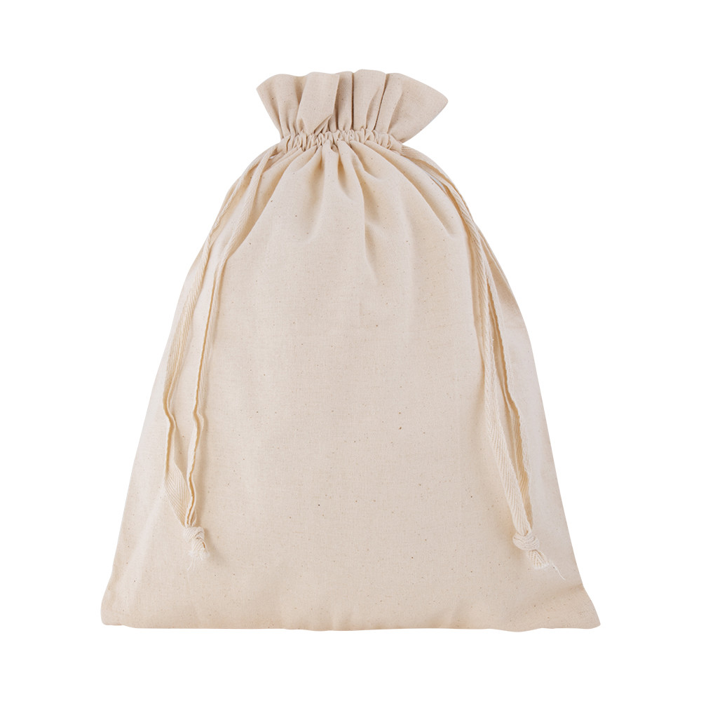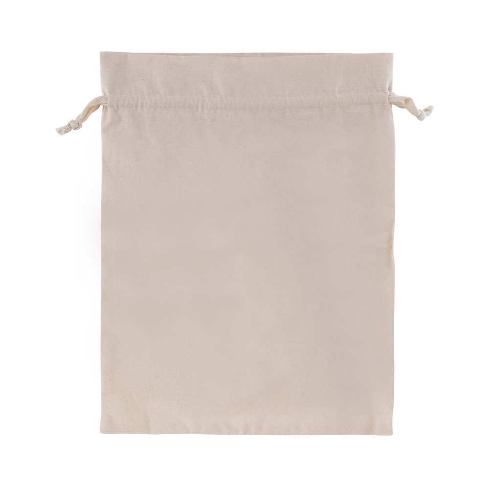 Saco fabricado em algodão 140gr / m2 e fecho de cordão. Tamaño 27x35 cm.