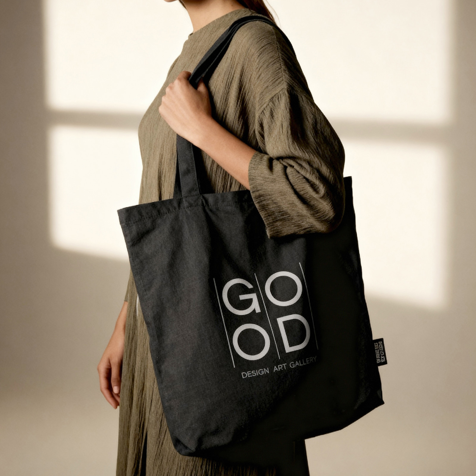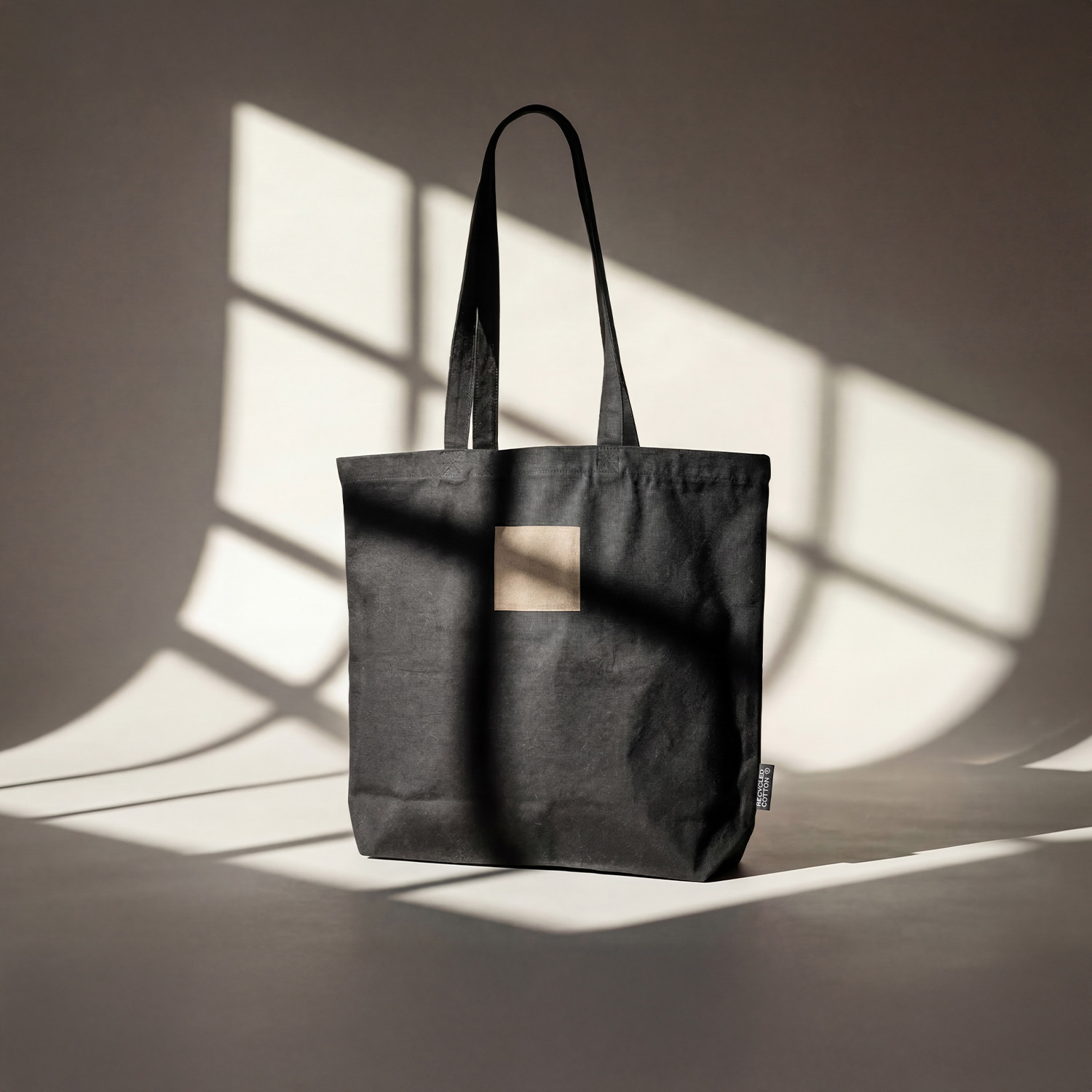 Saco de alças longas fabricado em algodão reciclado de 180 gr/m2. Possui certificado GRS.
