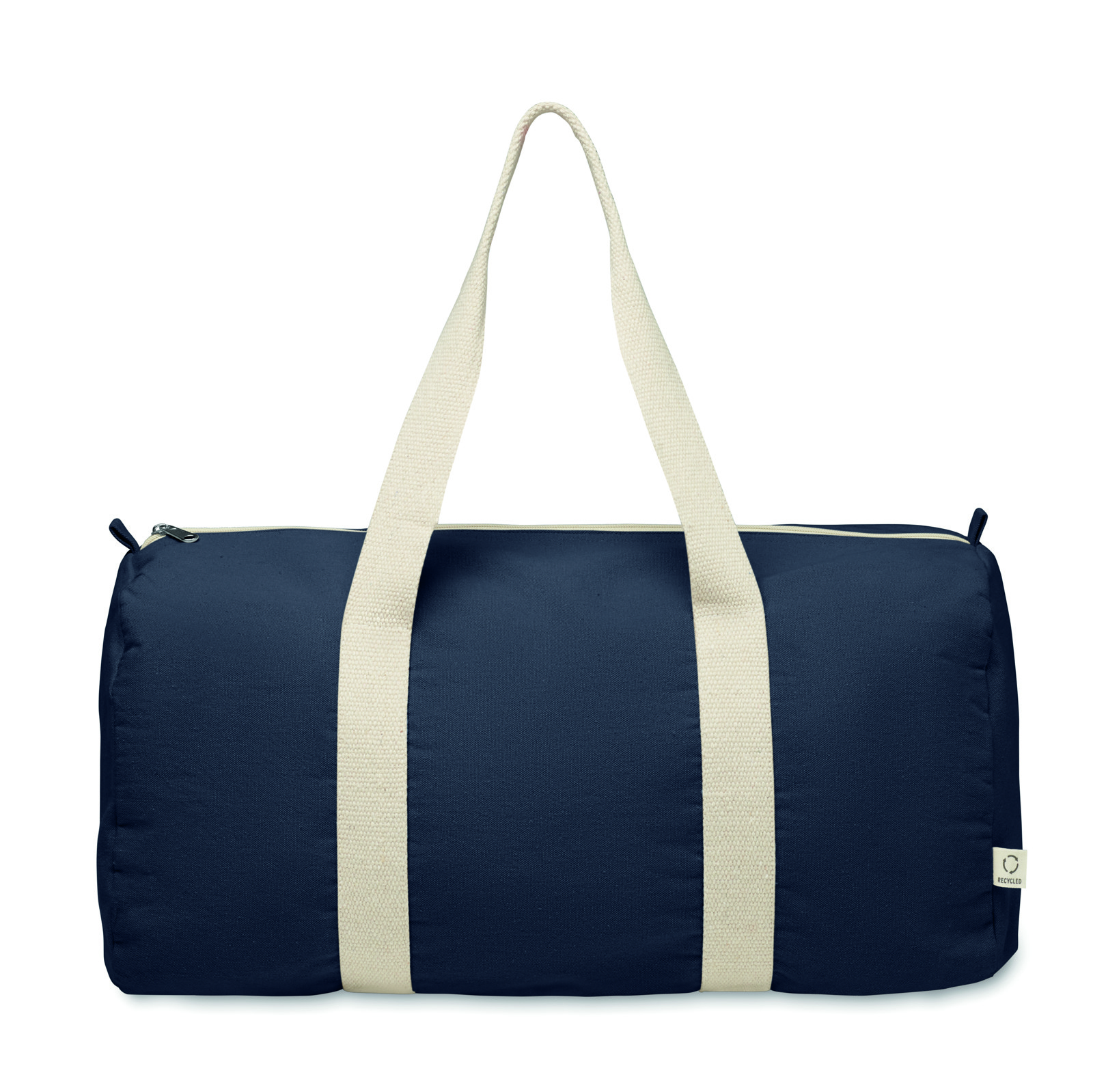 Saco de desporto ou de viagem com compartimento lateral com fecho de correr e bolso interior com fecho de correr em algodão reciclado de 320 gr/m² (80%) e poliéster reciclado (20%) com pegas longas.