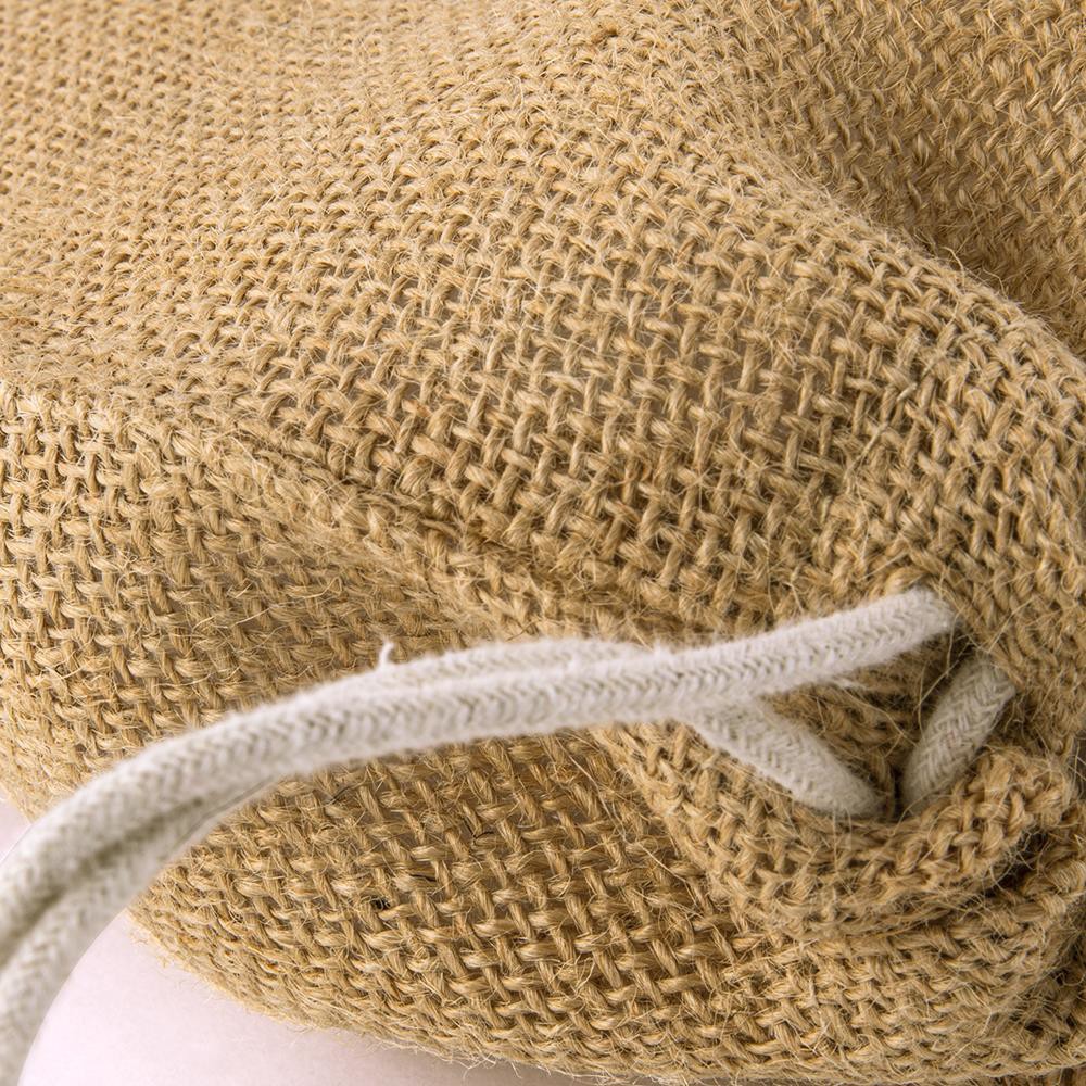 Saco de apresentação fabricado 100% em Juta de 270gr/m2 e fecho de algodão. Tamanho 25 x 30 cm.