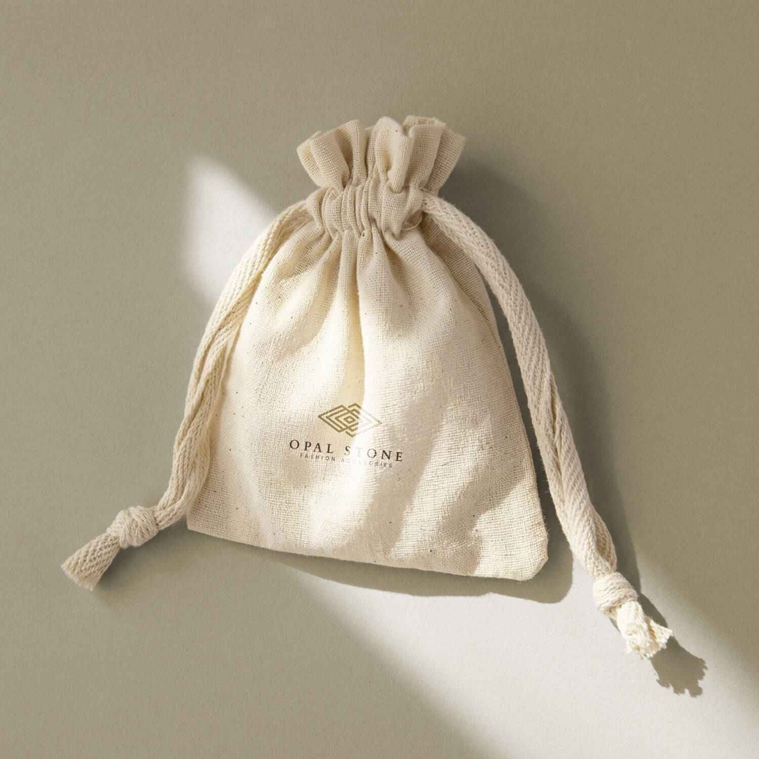 Saco de apresentação fabricado em algodão de 140gr/m2 e fecho de cordão. Tamanho 9 x 10,5 cm.