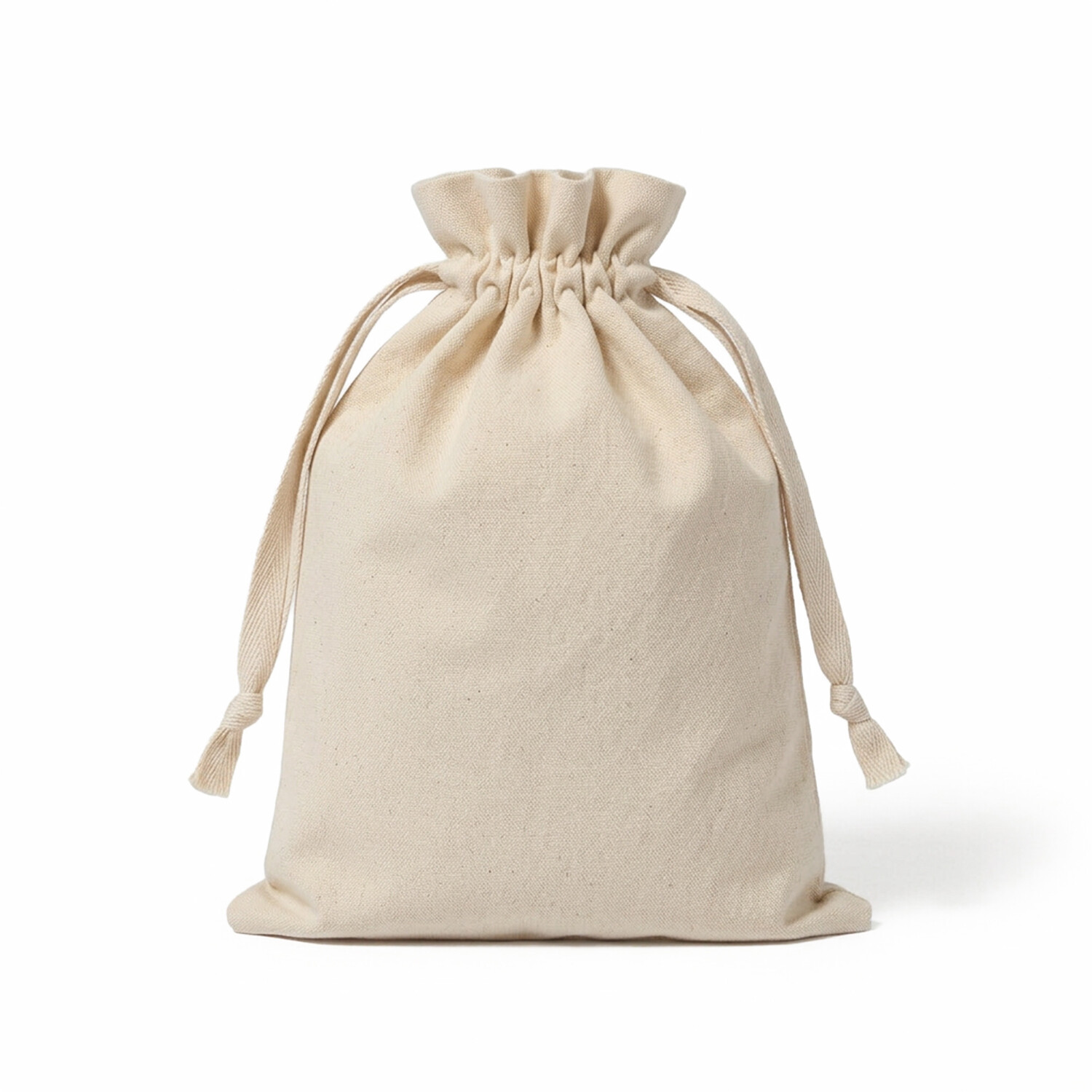 Saco de apresentação fabricado em algodão de 180 g/m2 e fecho de cordão. Tamanho 20 x 30 cm.