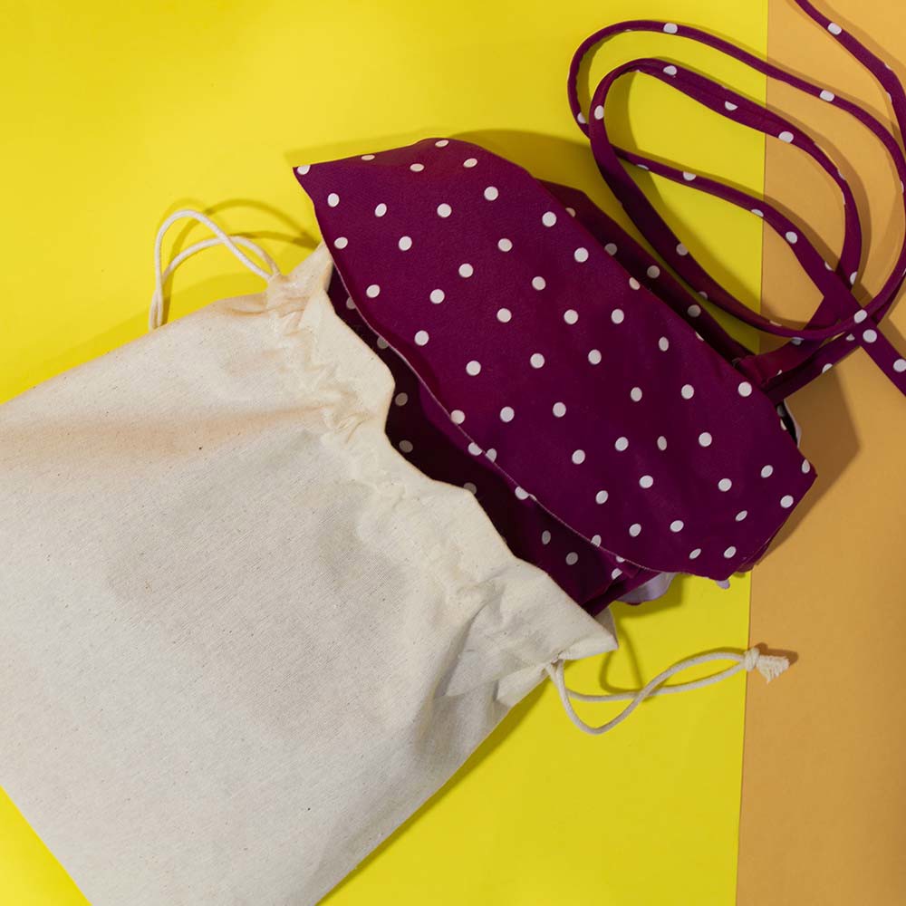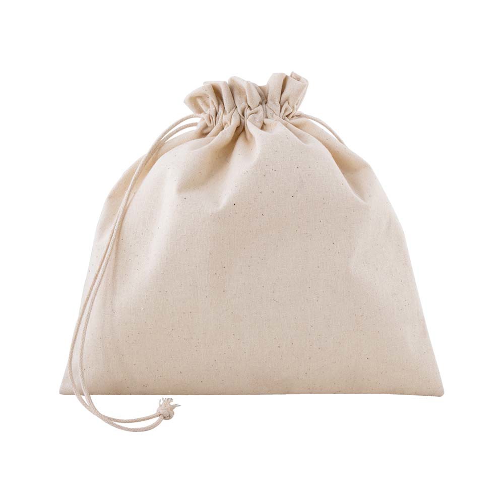 Saco de algodão de 140 g / m2 com laminado interno para isolar a umidade, com fecho de cordão.