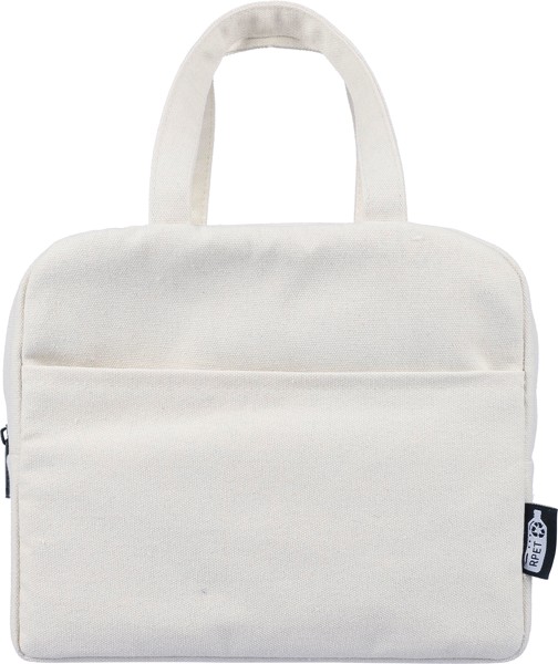 Saco térmico em polycotton reciclado (330 g/m2) com forro em poliéster 210D e interior em folha de alumínio almofadado. Tem uma capacidade de 8L, uma alça de transporte, detalhes a condizer e uma capacidade de transporte de 5 kg. Inclui uma etiqueta.