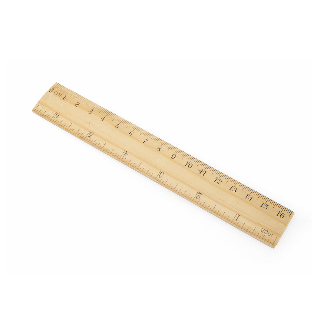 Conjunto de 6 peças com 3 lápis de madeira com corpo redondo natural e chumbo preto, governante de 20 cm com sistema métrico em centímetros/polegadas, apagador e apontador de lápis. Apresentado na caixa de papelão reciclada. 6 Peças