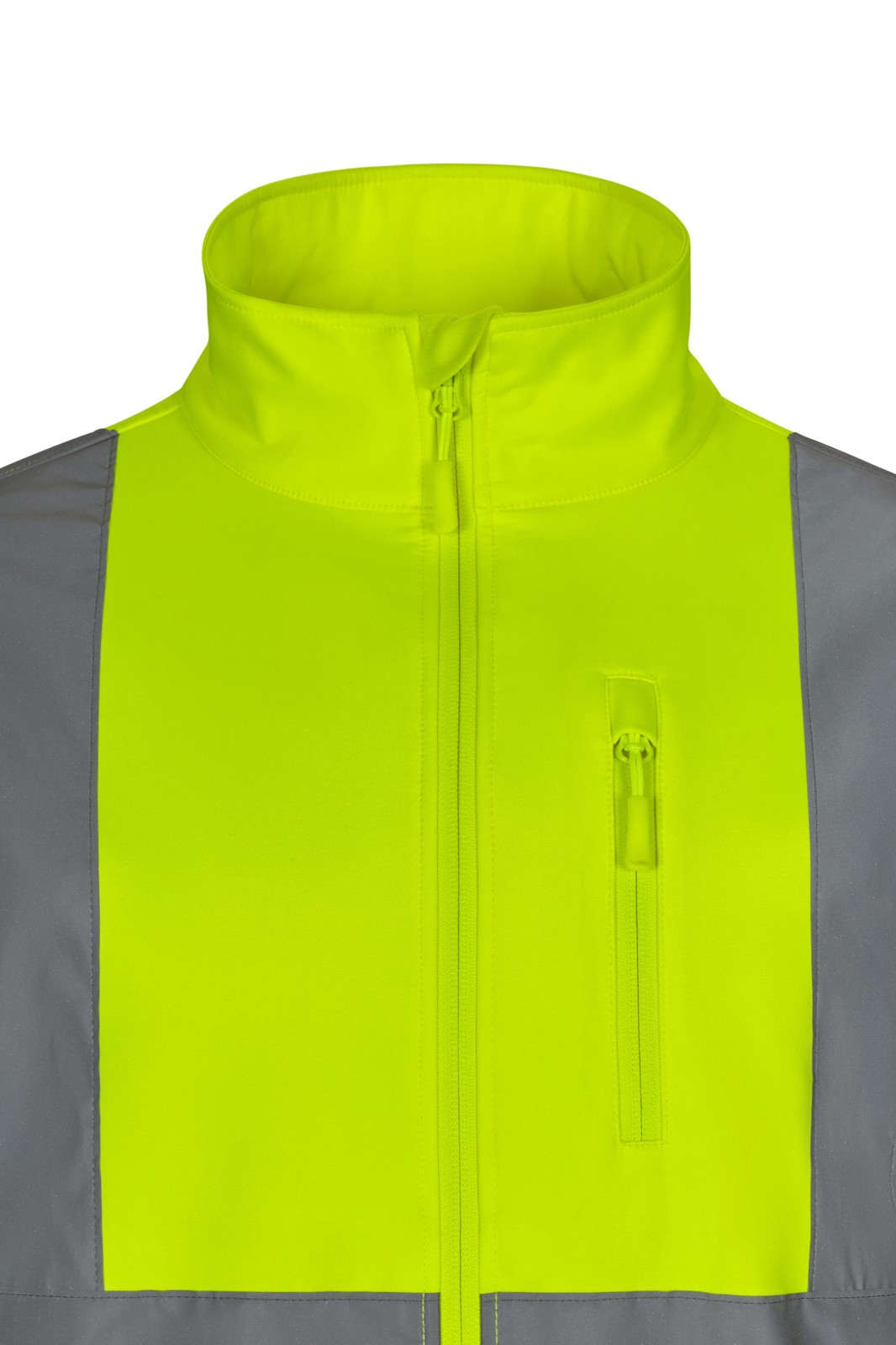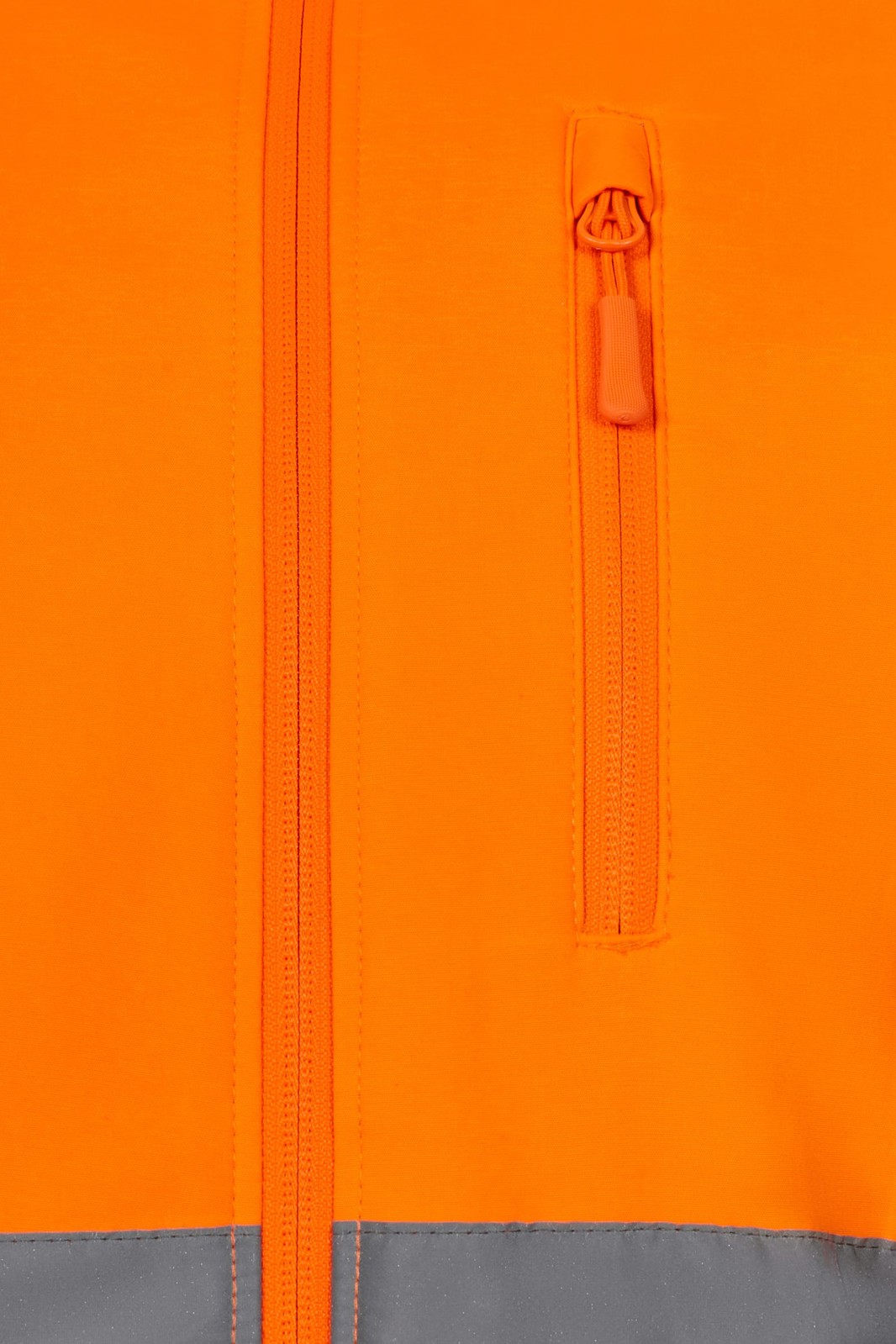Tecido de camada tripla Fecho central com fecho de correr invertido Carcela interna virada na parte superior, cobrindo o fecho de correr Faixas refletoras no torso, ombros e mangas Punhos ajustáveis com velcro Cinco bolsos: 3 bolsos de vuvi, com fecho de correr estanque 2 bolsos interiores chapa 280 GSM