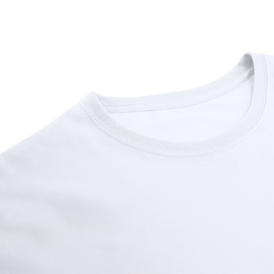 Camiseta de manga curta unissex confeccionada em algodão de trama lisa de 170 g/m². Com gola redonda de 4 camadas em ribana 1x1. Conta com costuras laterais e reforço de costura de ombro a ombro.