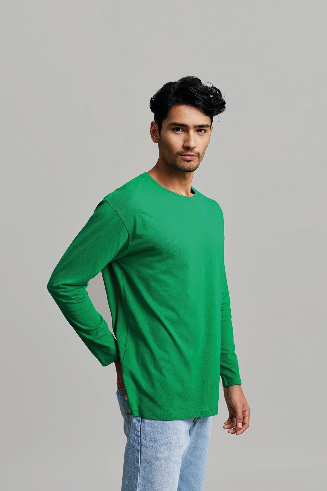T-shirt UNISSEXO manga comprida. Single Jersey. 100% Algodão RingSpun. 155 g/m². Decote redondo canelado 1x1 com elastano para maior elasticidade Tapa costuras reforçada ombro a ombro para evitar deformação Costuras laterais Sem punhos Tato suave Regular Fit Nome anterior: PLANET SINGLE JERSEY TUBULAR. 100% ALGODÃO RINGSPUN 155 GSM