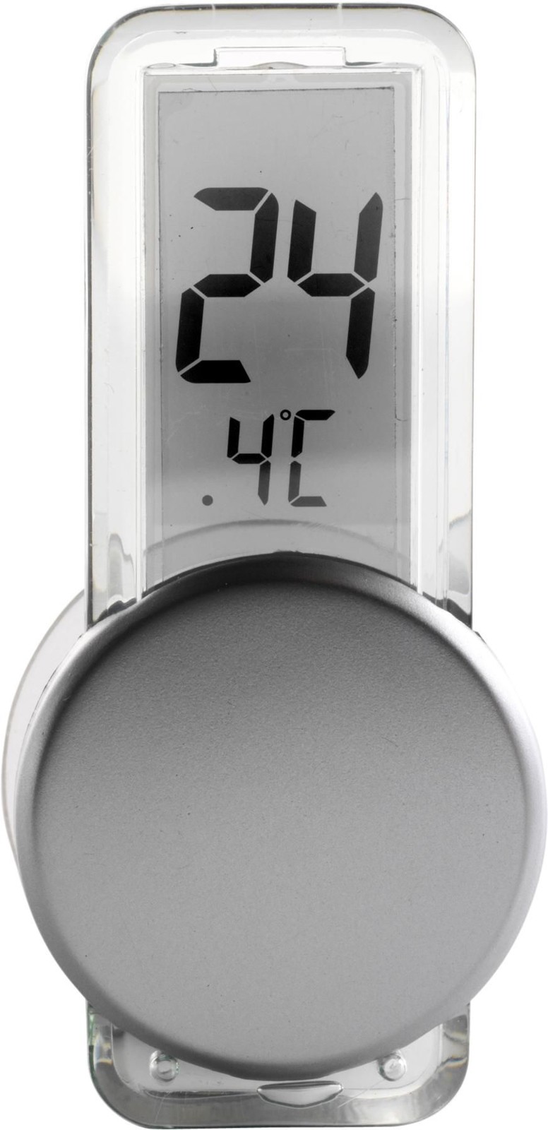 Termómetro de plástico com ventosa, para uso interior. 1 pilha botão incluída.