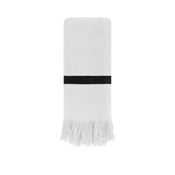 Suave toalha fabricada em algodão de 290g/m². Seu design é caracterizado por elegantes fios nas extremidades e inclui uma prática fita elástica que facilita seu transporte e armazenamento.