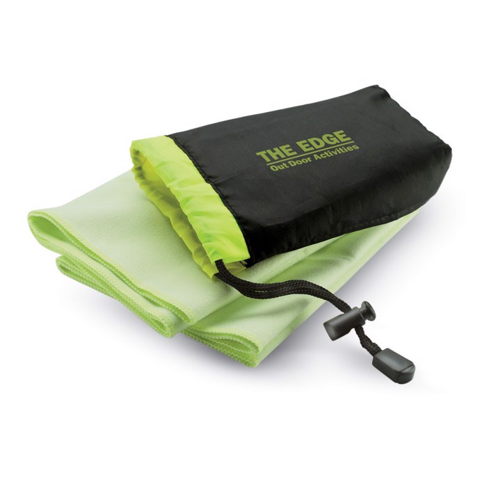 Toalha de desporto em estojo de nylon. Toalha 70% Poliéster, 30% poliamida.